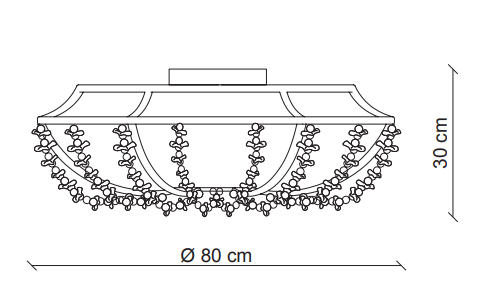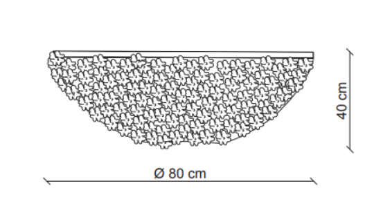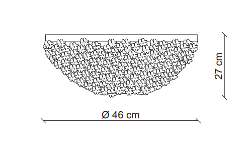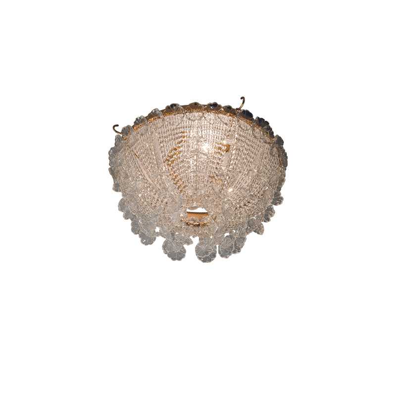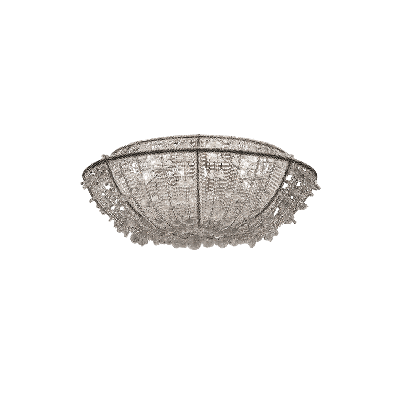 A flowery bouquet. A traditional metallic structure hosts a string of transparent pearls enriched with daisies in Murano’s blown glass: handmade, they maintain the naturality given by their uniqueness, just like flowers.
