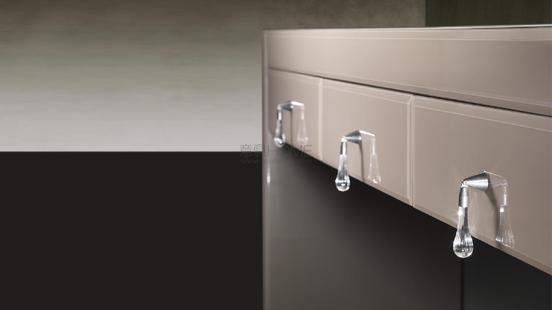Console in shiny lacquered wood with applications of bevelled lacquered glass on top and fronts. Drawer with pen holders. Also available with crystal or Murano glass handle.