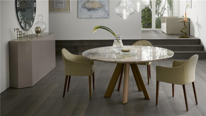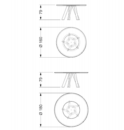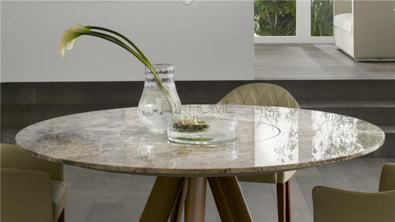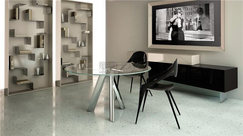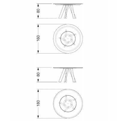 Dining table with base composed by oval section legs in brushed aluminum, shiny chrome, shiny black nickel or in satin brass or titanium finish. Top available in transparent, lacquered or etched lacquered glass or in Marble glass