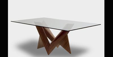 Dining table with base in Canaletto Walnut or in satin brass finish. Transparent glass top 15 mm thick with polished edges.