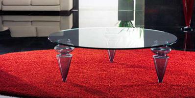 Coffee table with legs in Murano glass: smooth transparent, coloured or Platino finish or ribbed transparent or gold. Top in 12mm thick transparent glass.