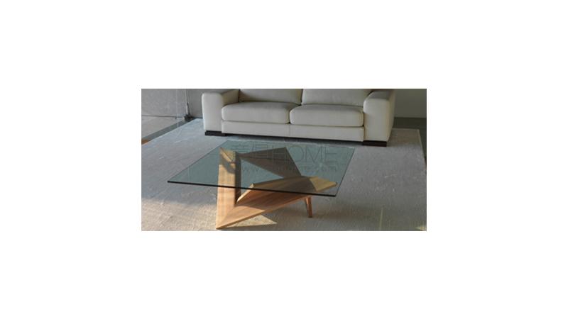 Coffee table with wooden base matt white or black lacquered, in Canaletto walnut or in satin brass finish. Glass top 12 mm thick.