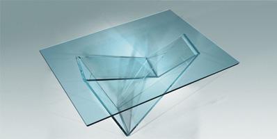 Coffee table with base in extraclear transparent or lacquered or etched lacquered glass.Glass top 12 mm thick.