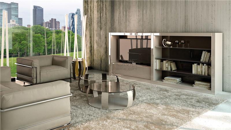 Collection of modular units. Structure available in shiny lacquered wood with applications of bevelled lacquered glass or in shiny ebony with LED lighting. Doors and backs covered in lacquered glass. Available in various solutions:
