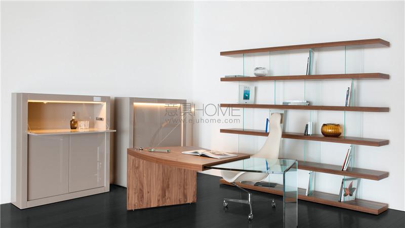 Interlocking modular bookcase with shelves in matt or shiny lacquered wood, Canaletto walnut or matt or shiny ebony wood. Sides in extraclear glass 10 mm thick. Optional: sliding door in lacquered or etched lacquered glass, in Mesh glass or in Marble glass.