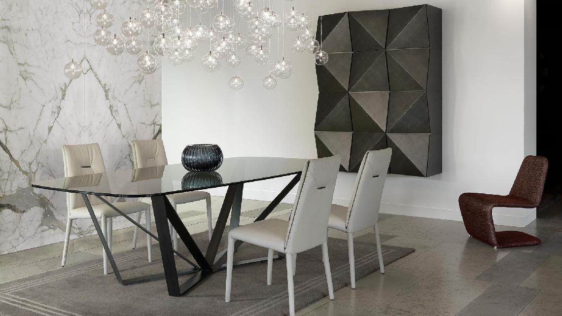 Upholstered legs or in shiny nero beluga lacquered wood, Canaletto walnut or matt beluga Oakwood.