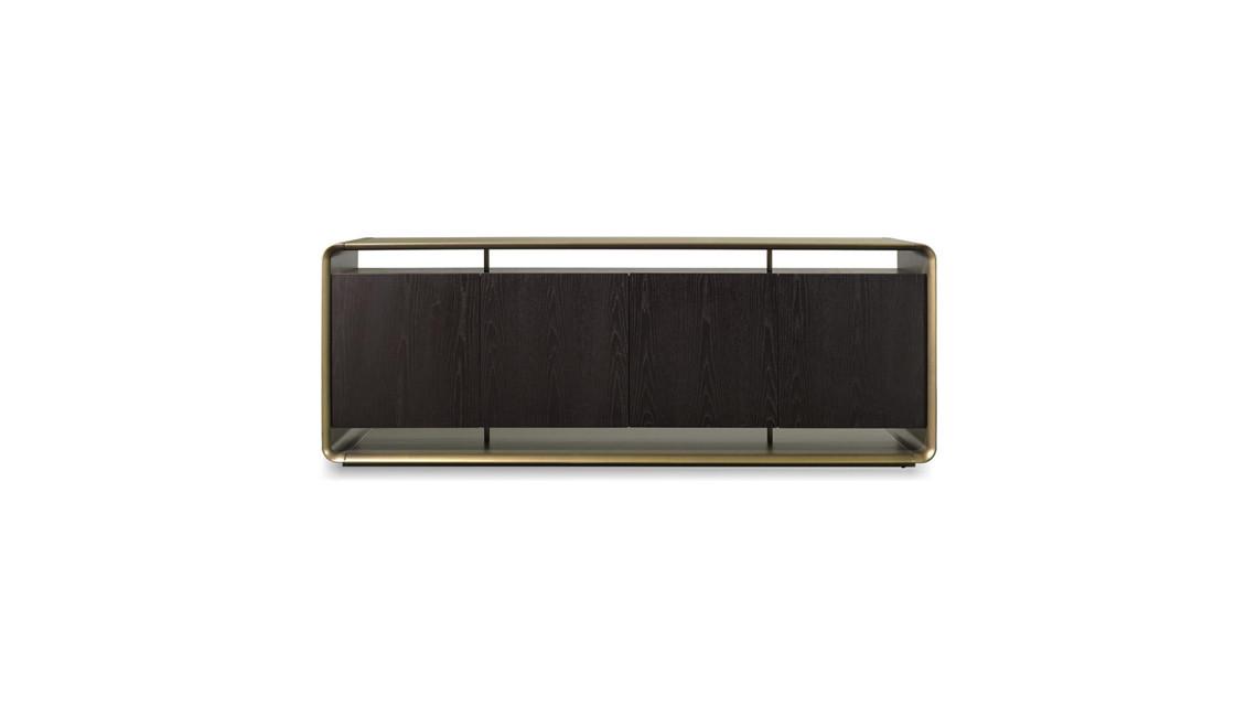 Sideboard with structure in shaped rounded wood in the satin metallic finishes.