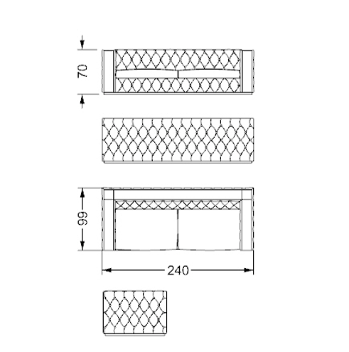 Rivestimento in tessuto, velluto o pelle.