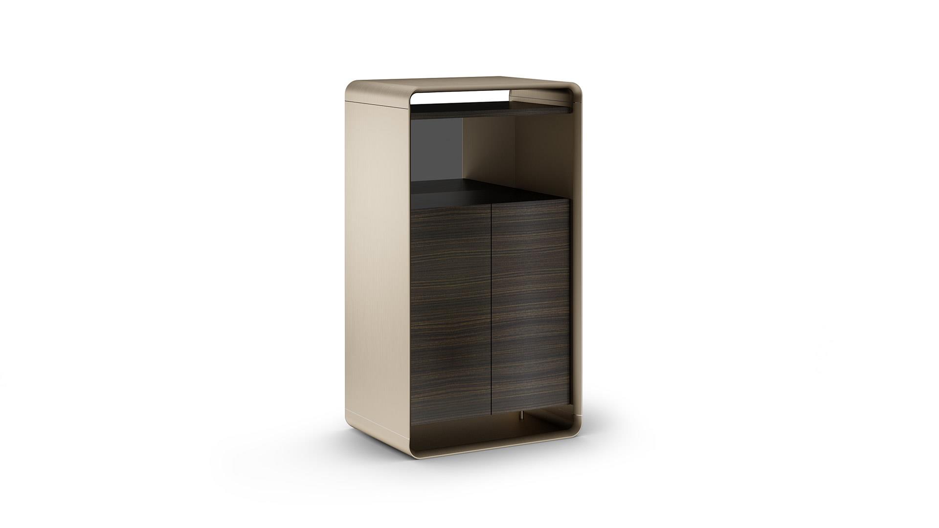 Cupboard with structure in shaped rounded wood in Bronze, Brass, dark Brass, Titanium finish.