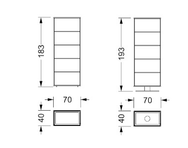 Collection of display cabinets in extraclear transparent glass. Available in two different heights with adjustable metal feet or with metal base. Doors with lock and optional lighting system.