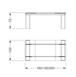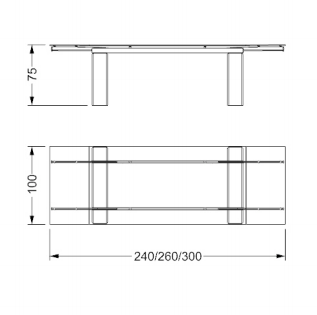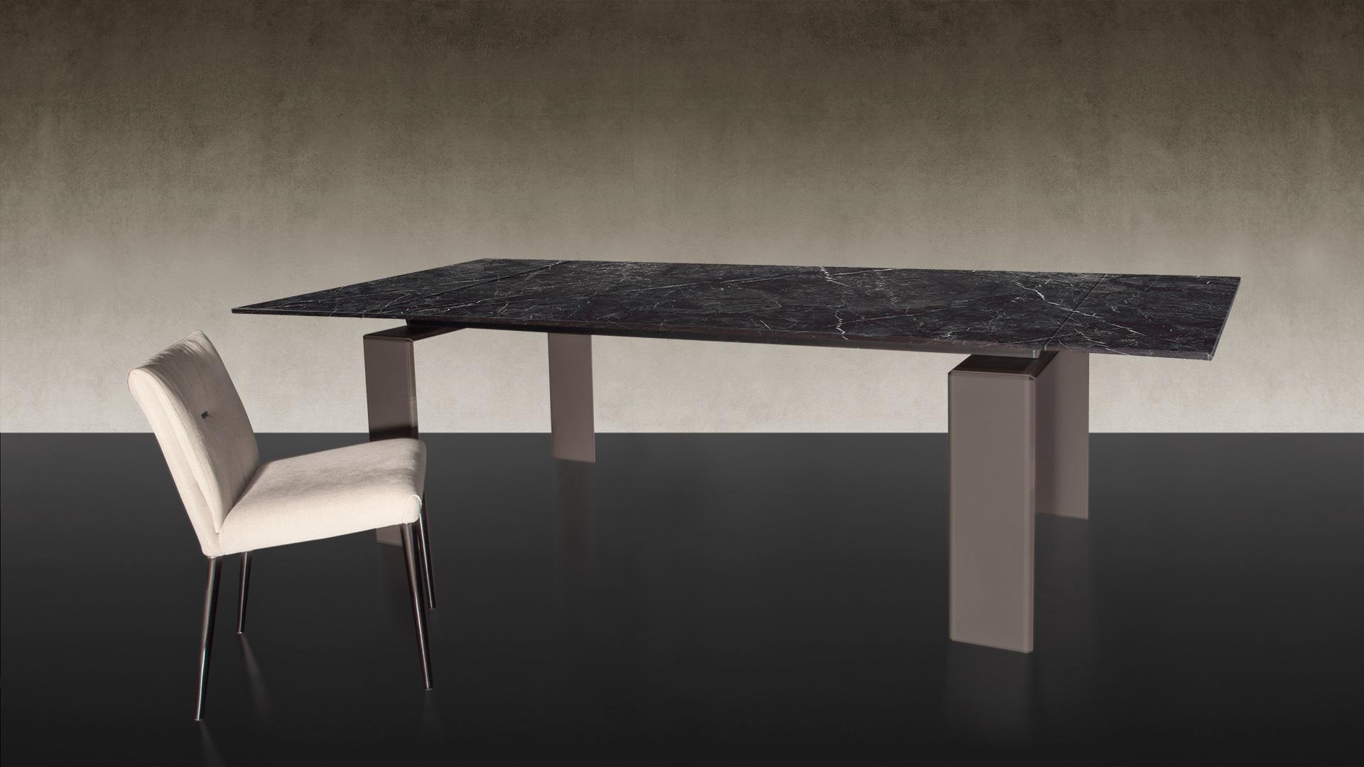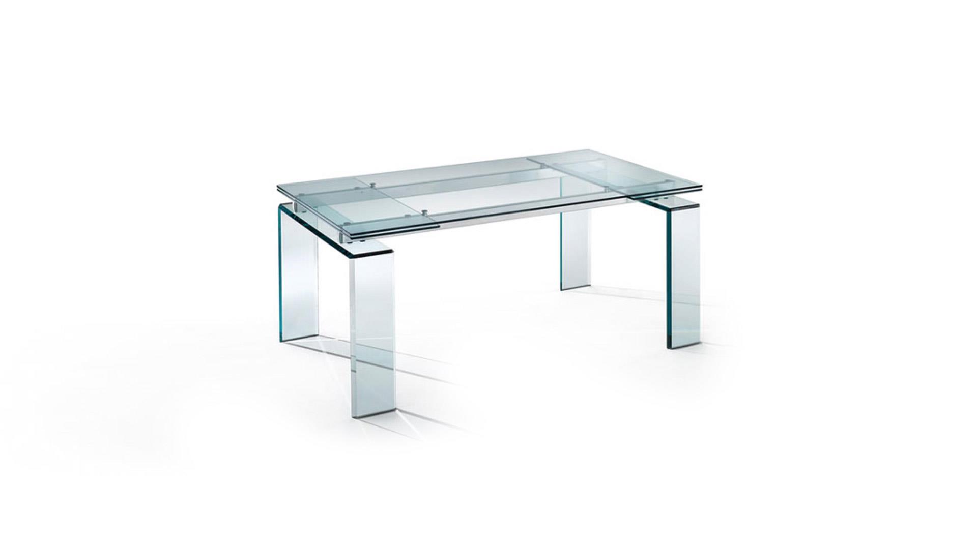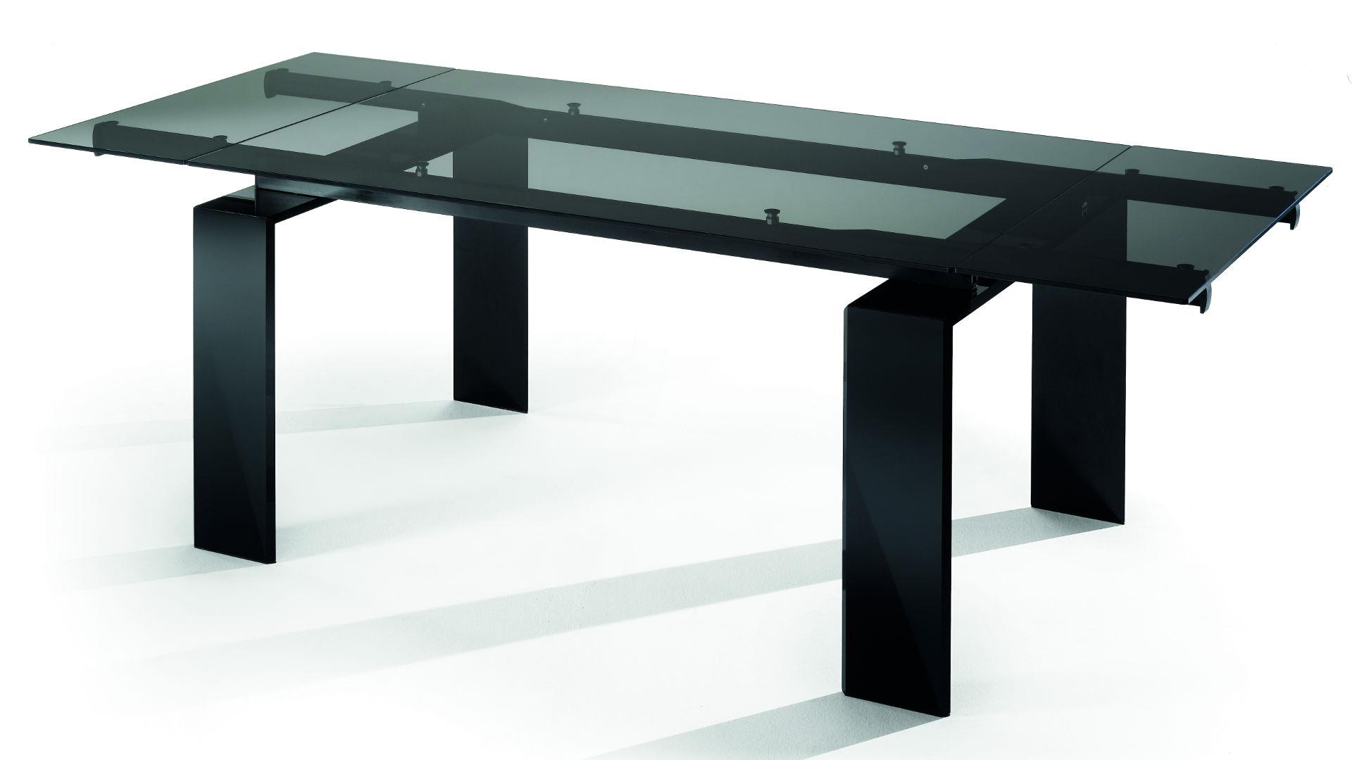 Extension-table with top and extensions available in transparent, lacquered or etched lacquered glass or in Marble glass. Aluminium structure in anodized black or in brushed finish. Legs in transparent, lacquered or etched lacquered glass 15 mm thick, or in Canaletto walnut.