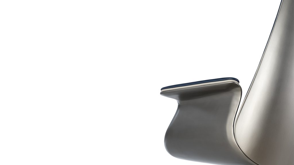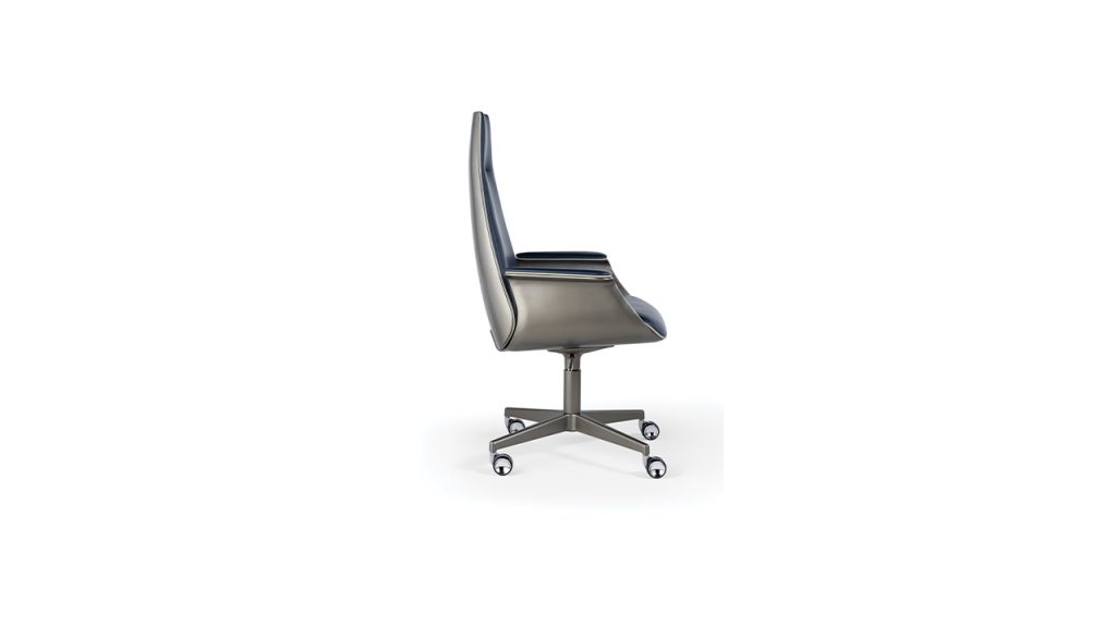 Poltrona direzionale con scocca esterna in finitura Bronze (100M), ottone (104M), ottone dark (105M), titanium (101M).