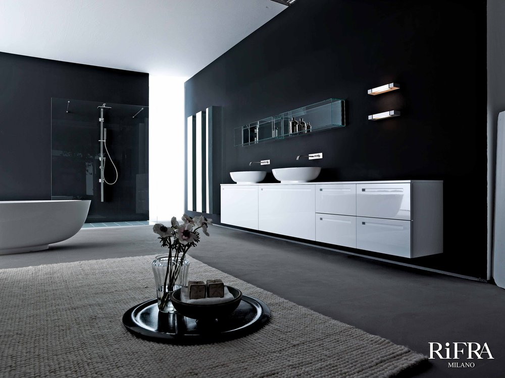 Il modulo che disegna K.LINE è il 40 cm, sviluppato sia in larghezza che in altezza. K.LINE è inoltre caratterizzato da una gola laccata, vero e proprio segno distintivo della collezione, che percorre tutto il profilo superiore del mobile e può essere laccata opaco a piacimento.