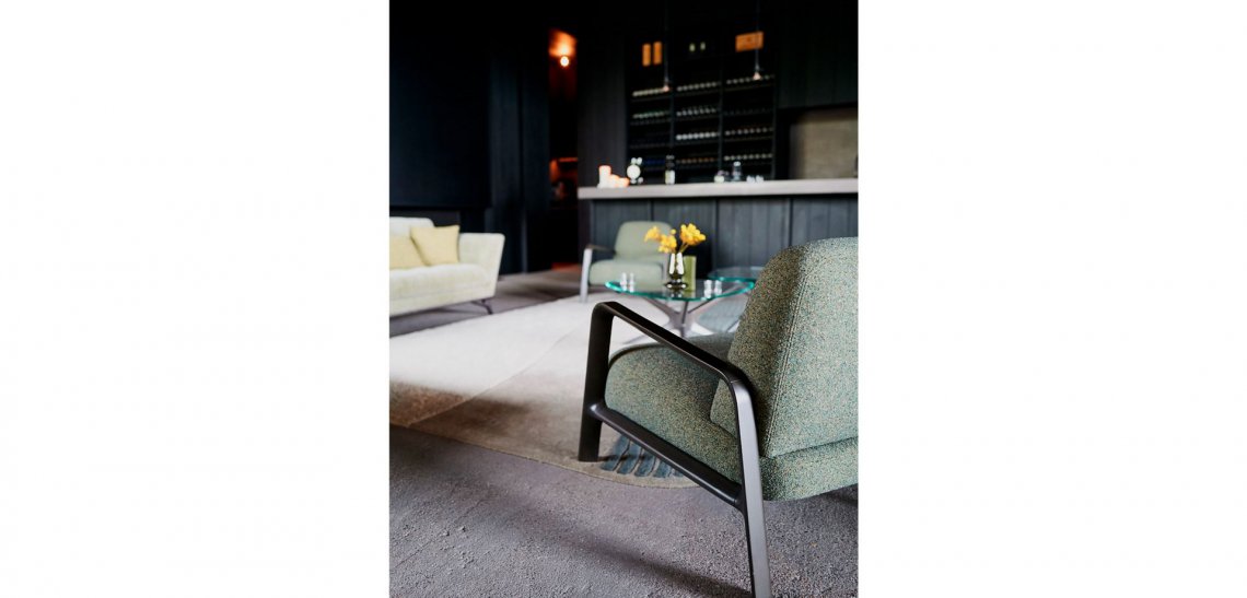 Seduta su cinghie elastiche mousse CMHR 28 kg, sotto seduta con tela di protezione Roche Bobois.