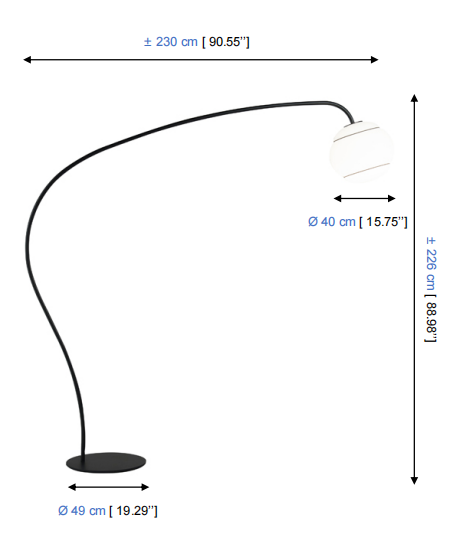 Lampada da terra con struttura in acciaio laccato nero opaco. Paralume in vetro soffiato con doppio cerchiaggio nero.