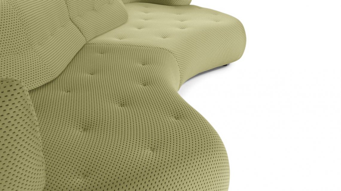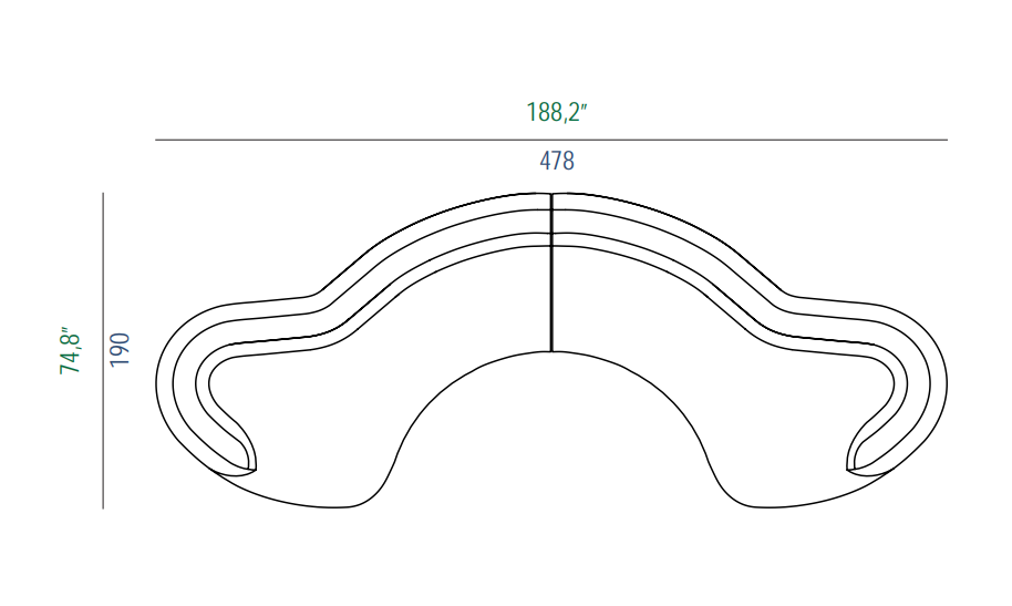 Rivestito in pelle o tessuto. Seduta in mousse poliuretanica 35M kg/m3. Schienale in mousse poliuretanica 21SM kg/m3. Struttura in abete massiccio e multistrato di pioppo (legno CARB). Sospensioni con cinghie elastiche incrociate. Piedini in metallo tinto nero. Cuscini decorativi in opzione.