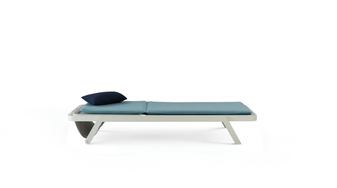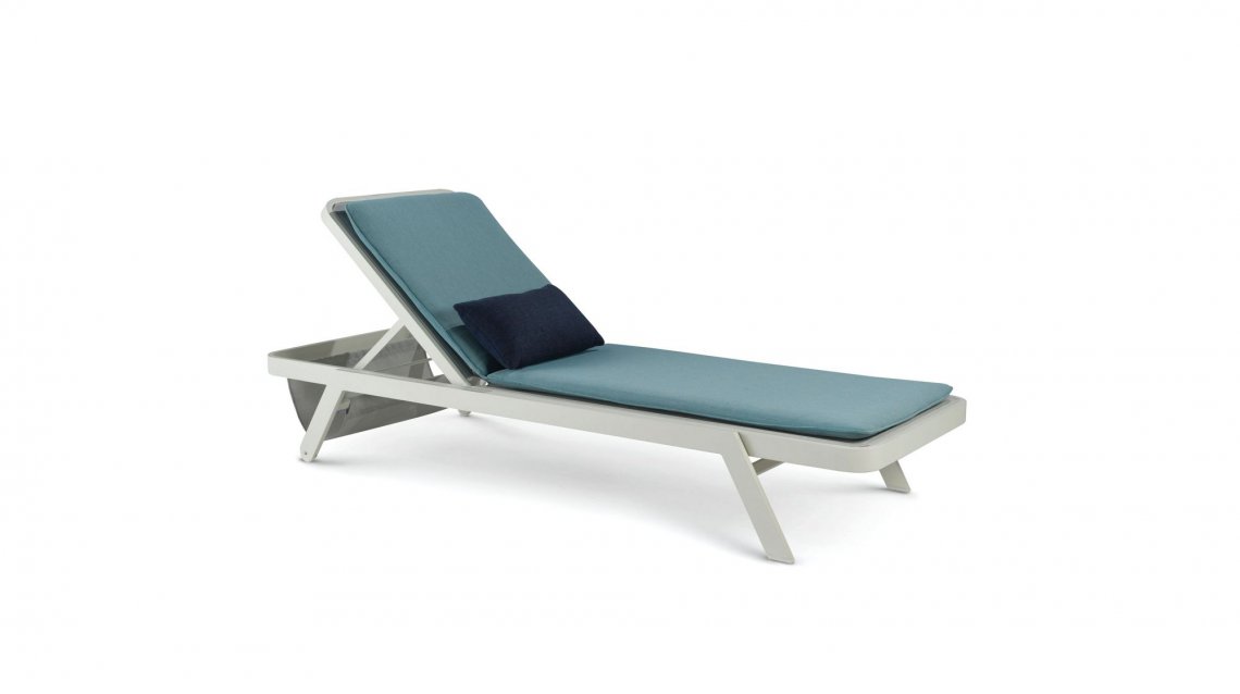 Leggera e mobile, impilabile, in alluminio riciclabile, Sunset è la chaise longue perfetta per godersi l'esterno. E' disponibile sia in Batyline, sia con doghe aspetto legno a base di lolla del riso.