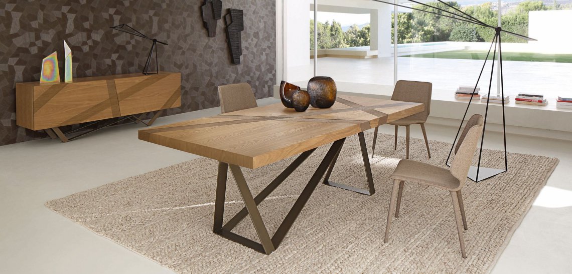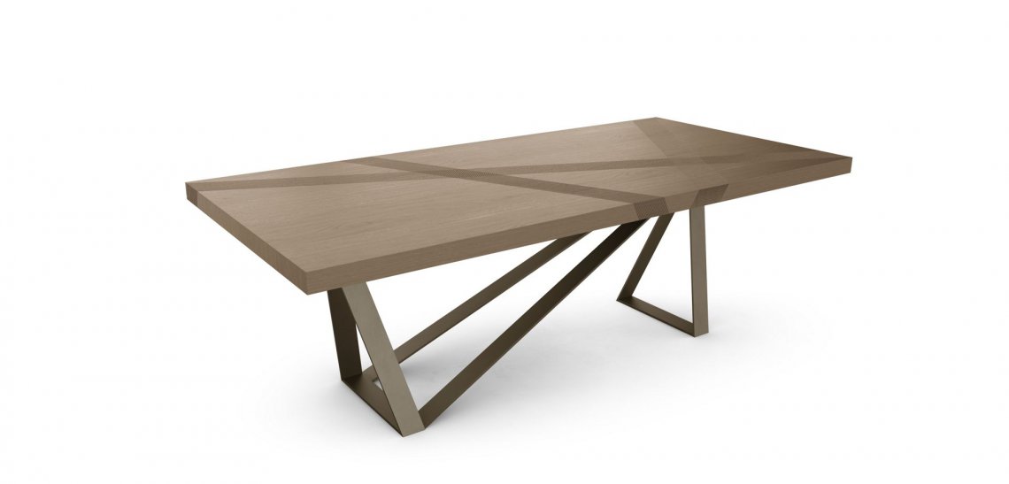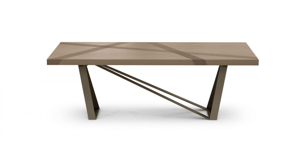 Ispirato dal lavoro di un artigiano, il designer Luigi Gorgoni ha immaginato questa collezione rivestita con un'impiallacciatura ad alto spessore con una serie di righe incise diagonalmente: un lavoro di tessitura al cuore del materiale.