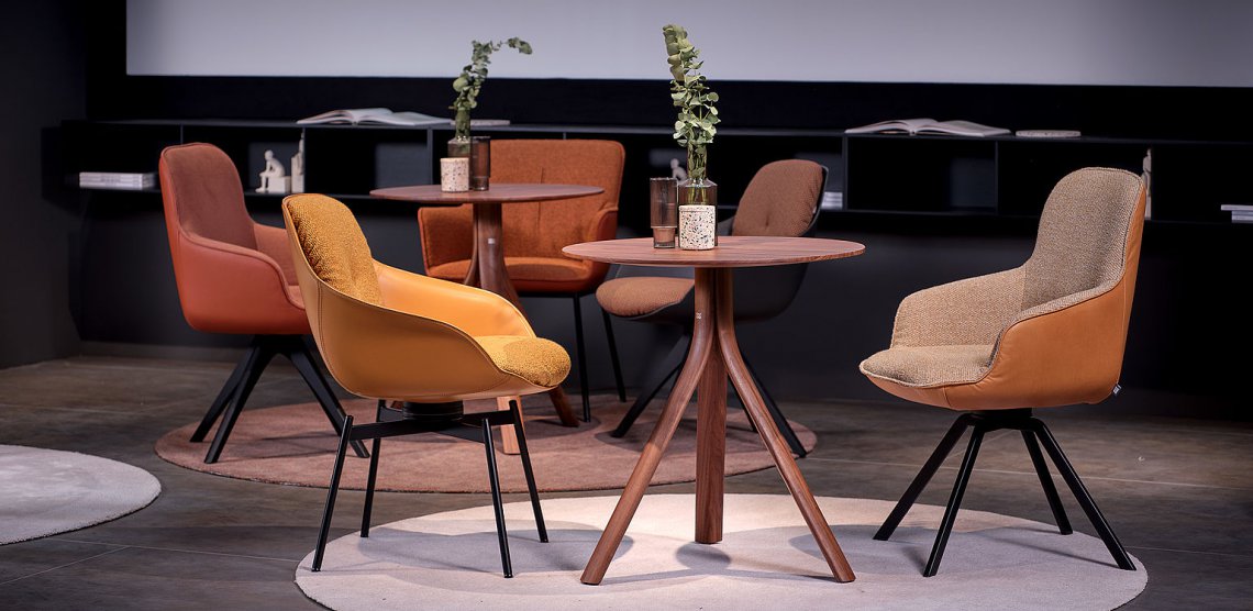 The bistro table can even be used in small spaces with up to three chairs. Alternatively, taller versions of Rolf Benz 976 can also be used as a high table or combined with bar stools. This makes it the ideal place to retreat both at home and at work, from an apartment in the city to a co-working space or a hotel lobby.
