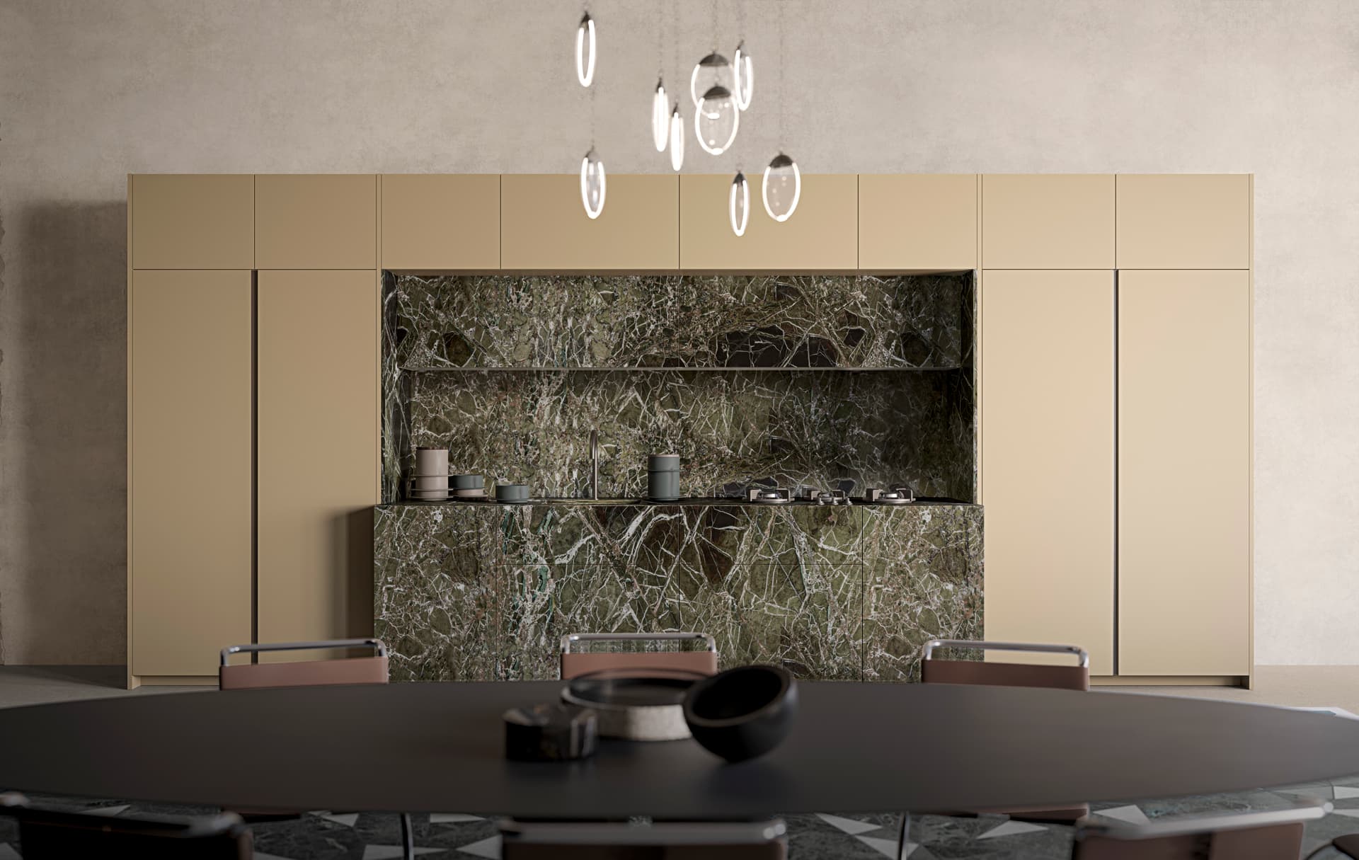 Massimo Castagna ripensa ed evolve la tipologia base della cucina contemporanea realizzando un progetto originale e innovativo e una vasta gamma di componenti speciali aggregabili, proponendo nuovi significati e funzionalità, oltre che un alto grado di personalizzazione. Un progetto dinamico che evolve e si arricchisce di nuovi elementi, valori, materie e significati.