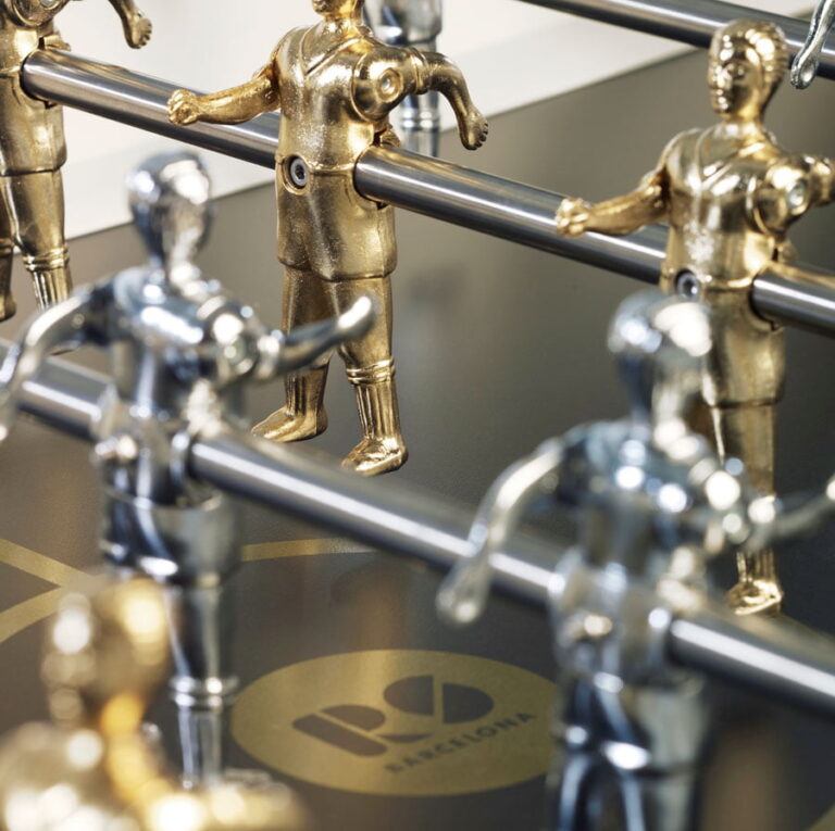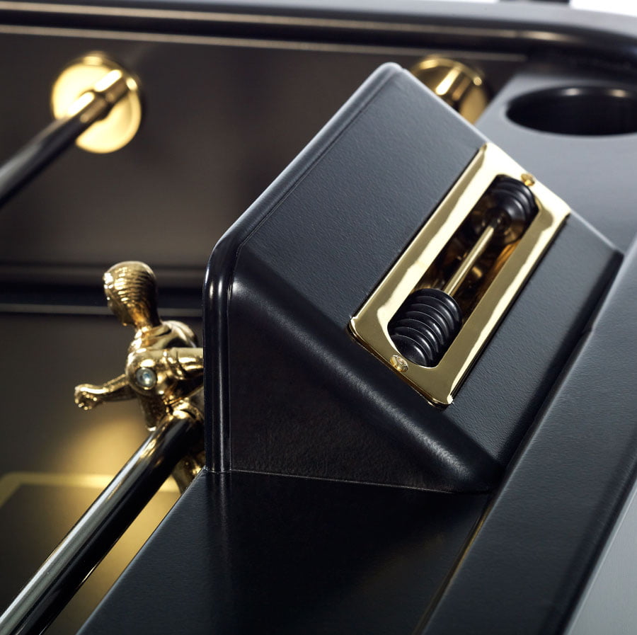 We’ve dressed our iconic RS2 football table to the nines. We’ve chrome-plated the players in silver and gold. And, what’s more, we’ve plated the score counter, ball bearings and screws, along with all the other small parts that have made this item an all-time classic, in 24k gold, providing plenty of lustre and injecting a dose of glamour into the game.