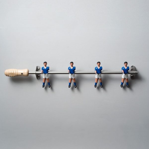 Wall Champions comes in two different models: the Wall Champions 4 – a rod with four players and a wooden handle that’s always visible – and the Wall Champions 1 – a single player with a wall fixture that’s hidden when you hang your jacket on it.
