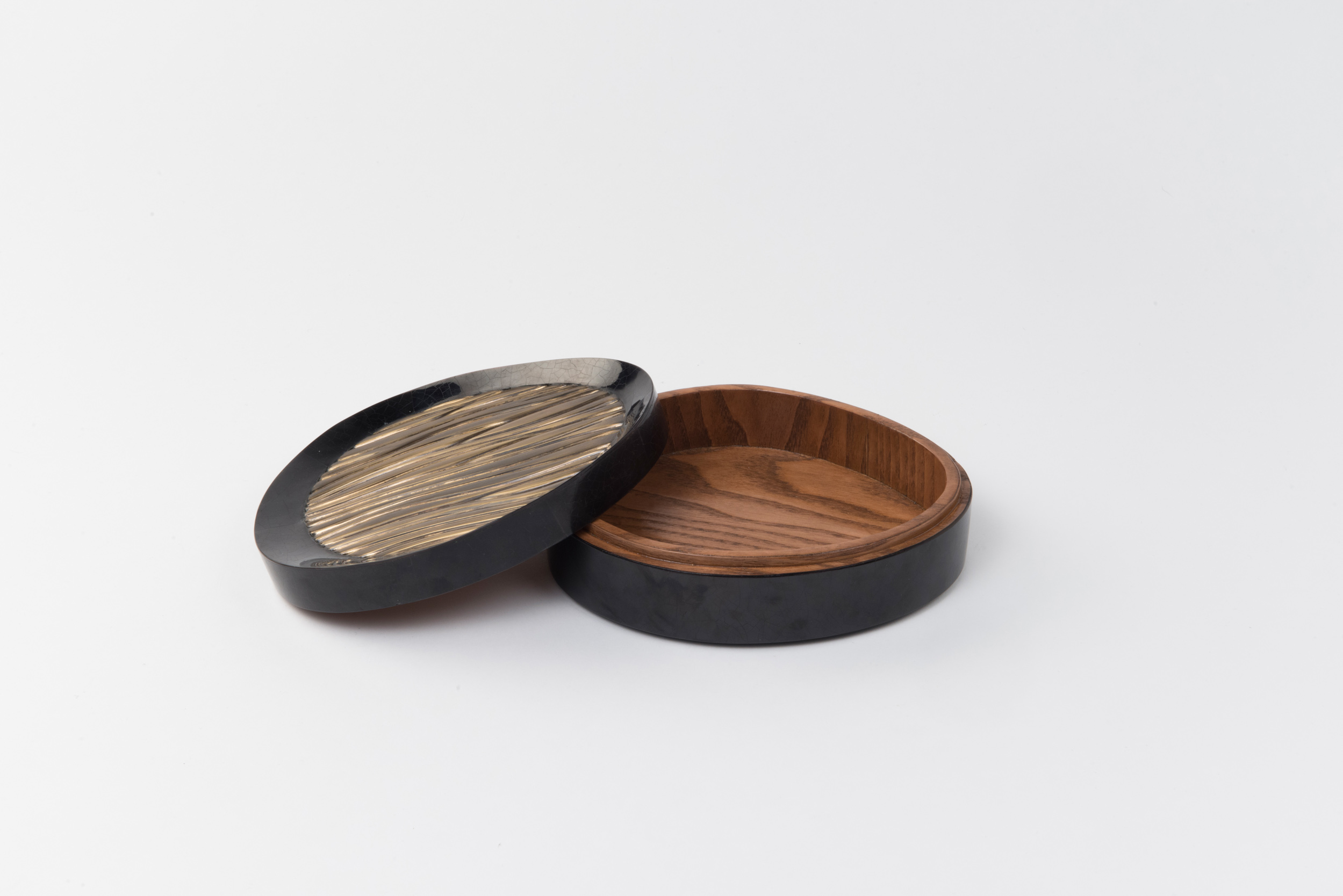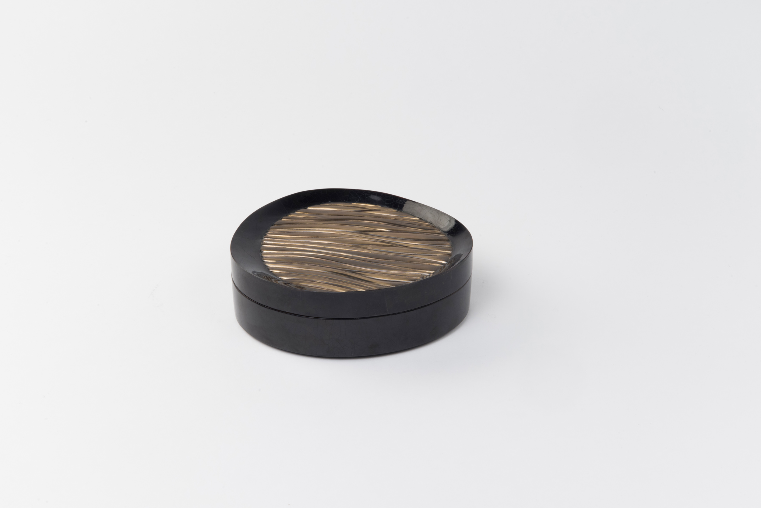 With her soft lines and intricate bronze-patina brass inlay, the Pendant Box M is a beautiful accent for all interiors. This item is available in other finishes and a small size.