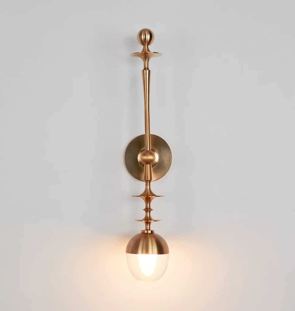 Inspired by summers spent at Helgerson’s ancestral home in Lyon, France, Rue Sala takes its form from the elegant interiors filled with thin Louis XVI furniture, bronze statuettes, and silky fabrics. Translated into turned metal and hand blown glass fixtures, Rue Sala is a delicate and refined collection with timeless appeal.