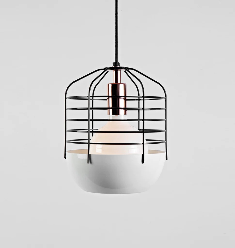 Bluff City merges a traditional pendant shade and a wire cage into an industrially inspired but refined pendant. A variety of finish combinations gives the light a vaguely postmodern feel that echoes the Memphis movement. However, the Tennessee town, known as Bluff City, was the inspiration for the series.