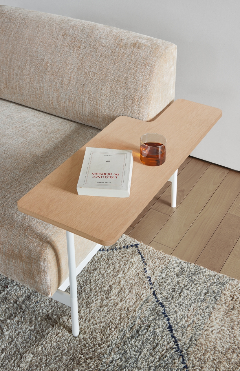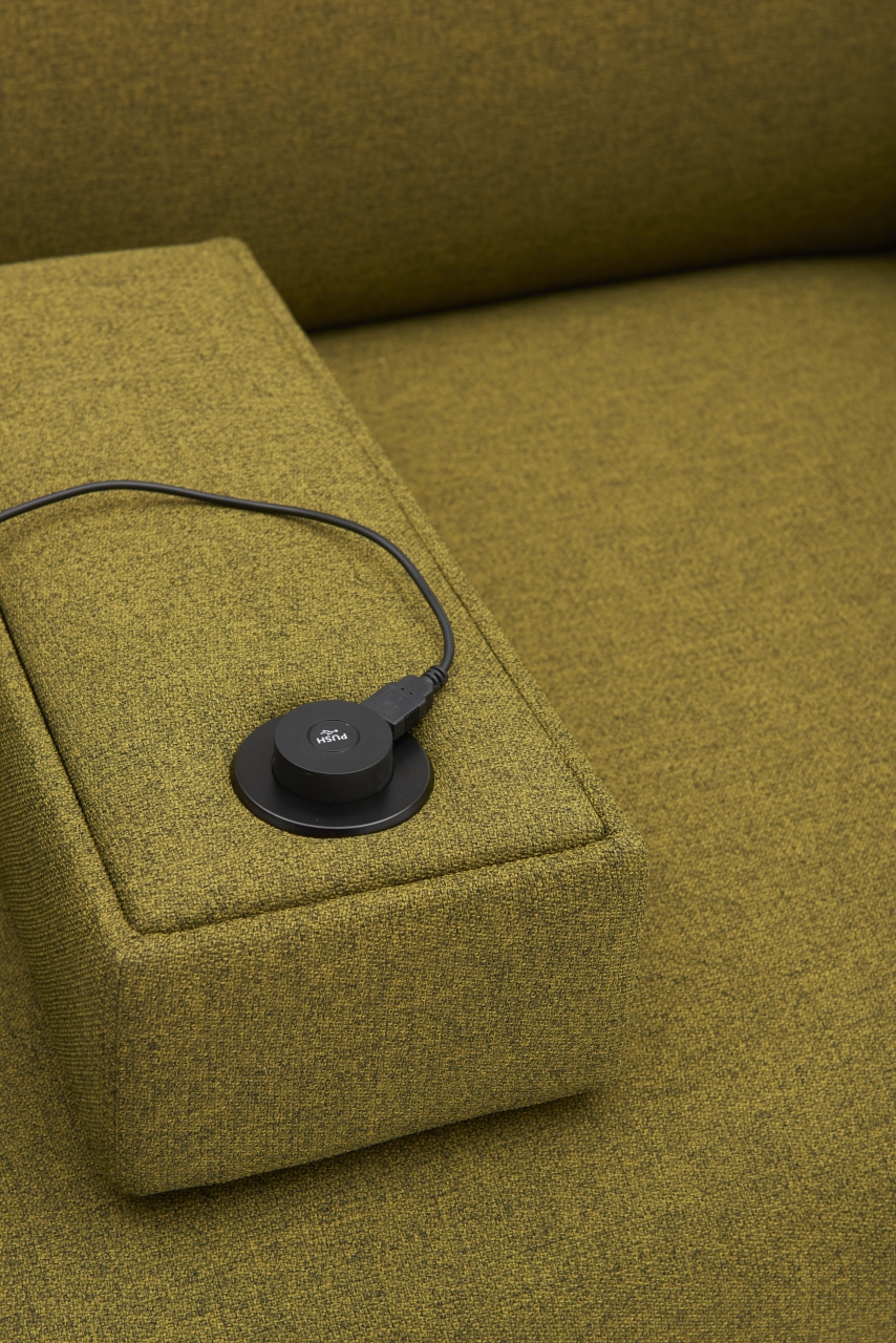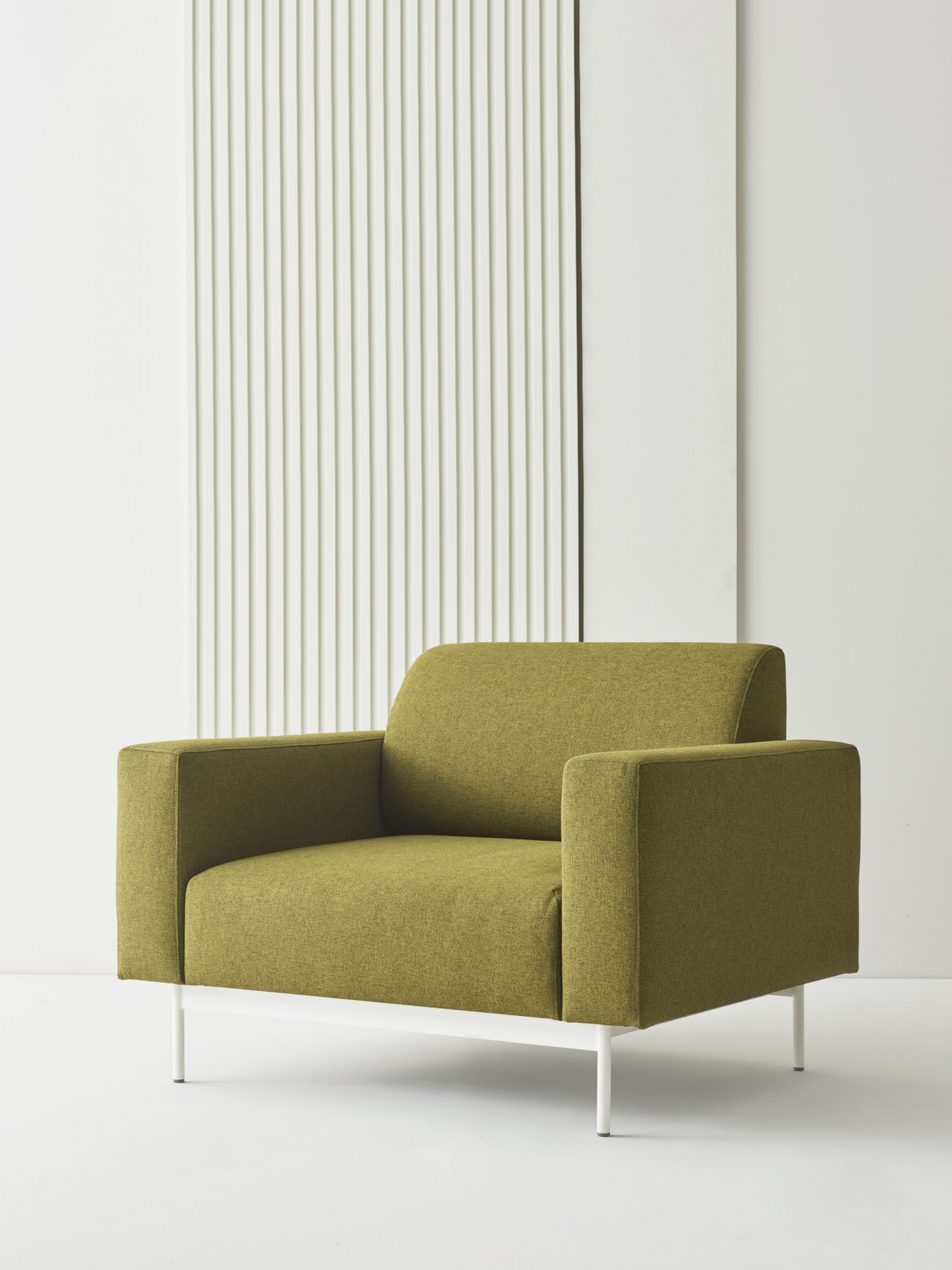 The collection includes two and three seater sofas plus an armchair; armrest options include an upholstered armrest in two sizes and a tablet arm for computer or other support. Joining tables between the seats or multifunctional tables complete the collecti