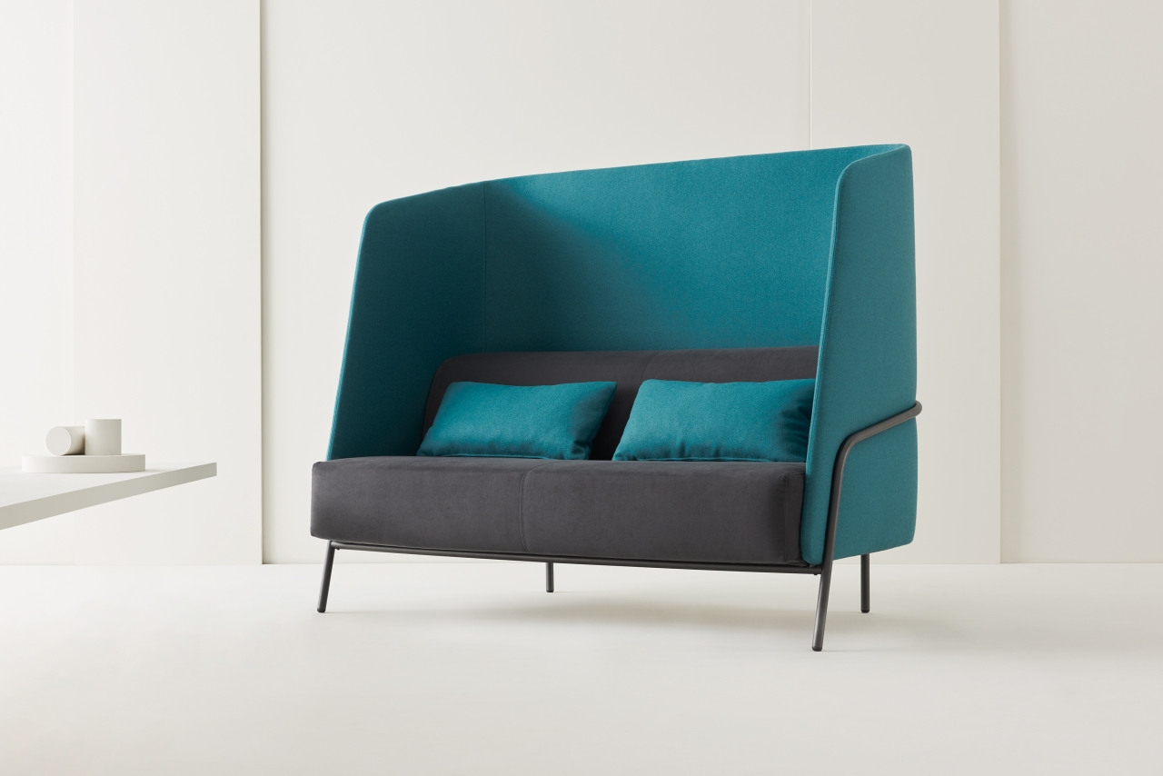 Noldor upholstered seating is characterized by a wide seat with a back in two dimensions. Its interesting squared shape offers true visual and acoustic protection. Technical materials such as sound absorbing upholstery combined with sophisticated finishes create an updated and exciting solution to today’s collaborative environment.