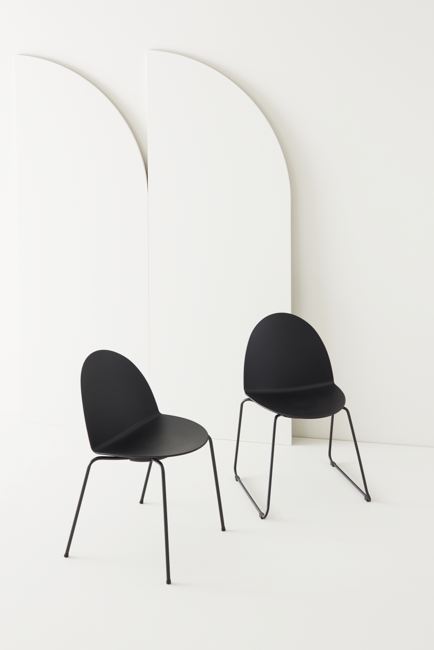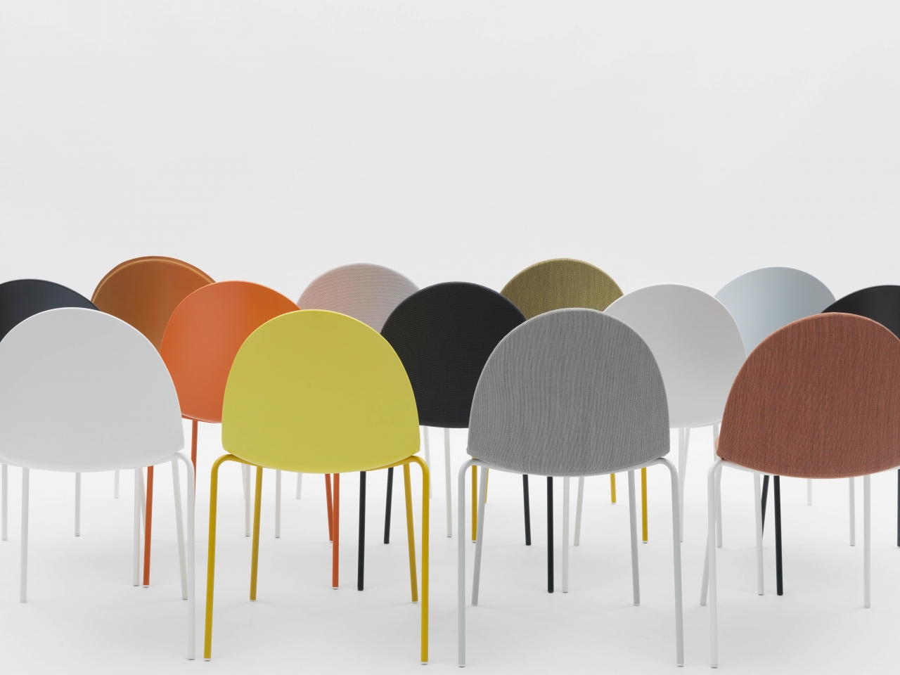An eclectic collection of seating with delicate soft designed lines, comfortable in a variety of applications. The shell, in polypropylene or upholstered, is combined with numerous bases and multiple seating for meeting, dining or public waiting environments.