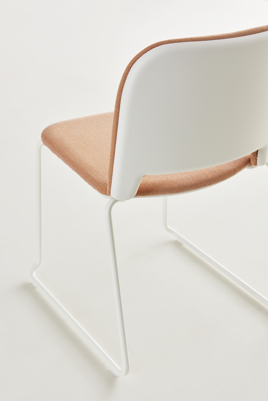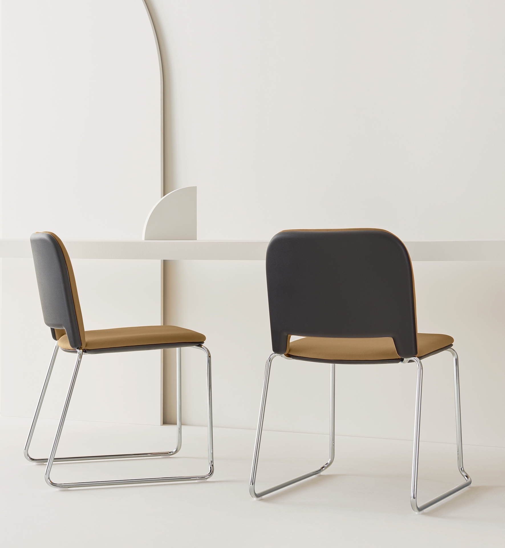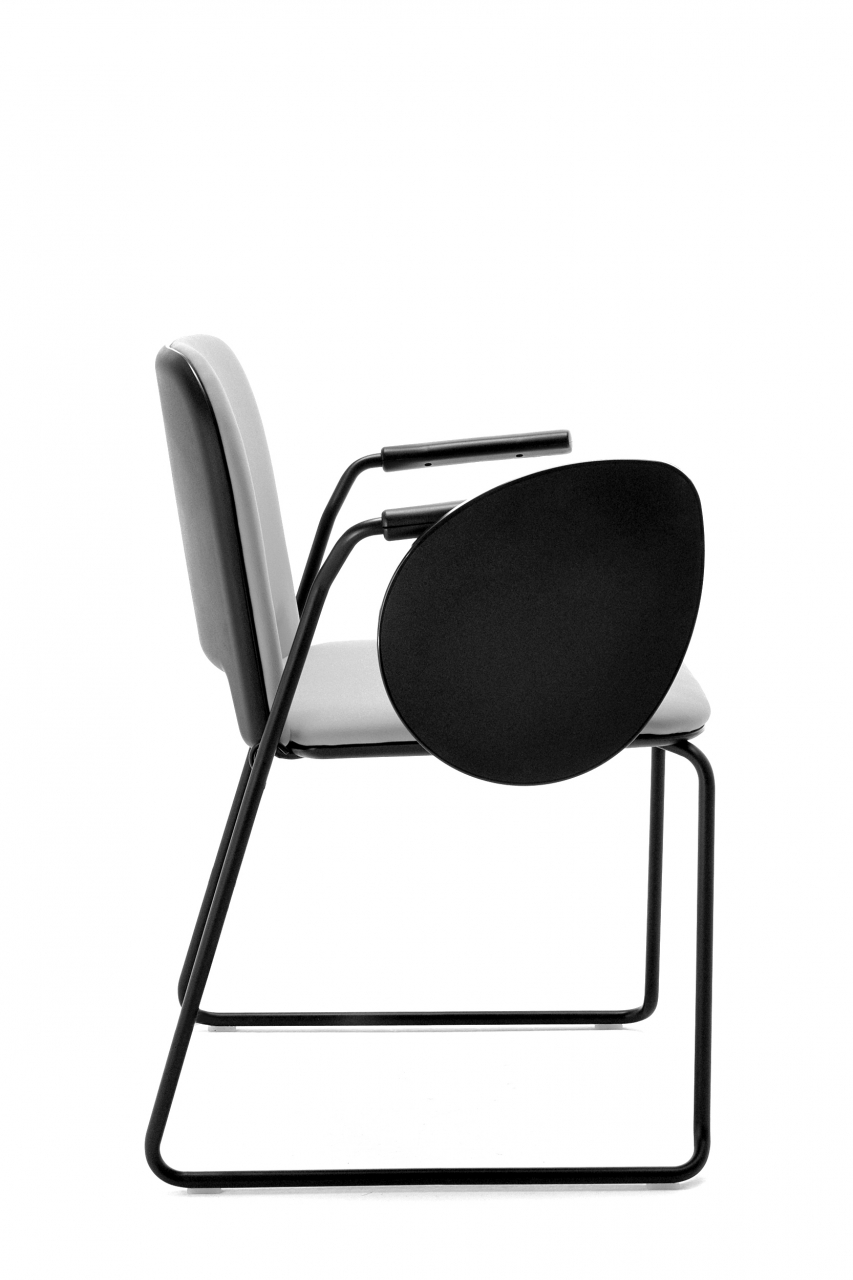 The frame with very resistant sled base, made of steel with powder coated or chromed finish, the external shells in polypropylene and the seat/back in cold injected fire retardant polyurethane foam, make Lips a perfect contract product. An upholstered chair with or without armrests enriched by some accessories like ganging device or anti-panic writing tablet.