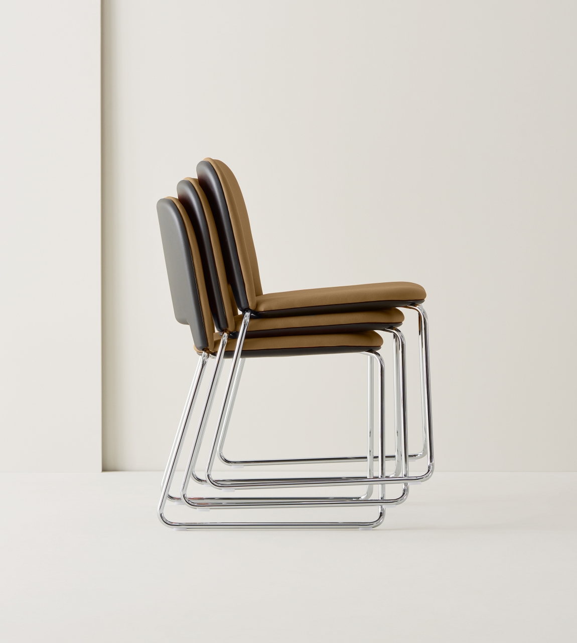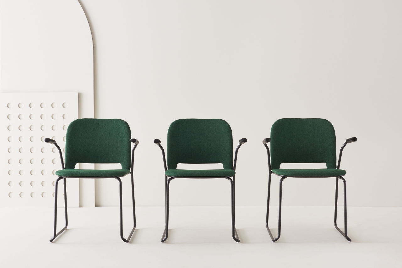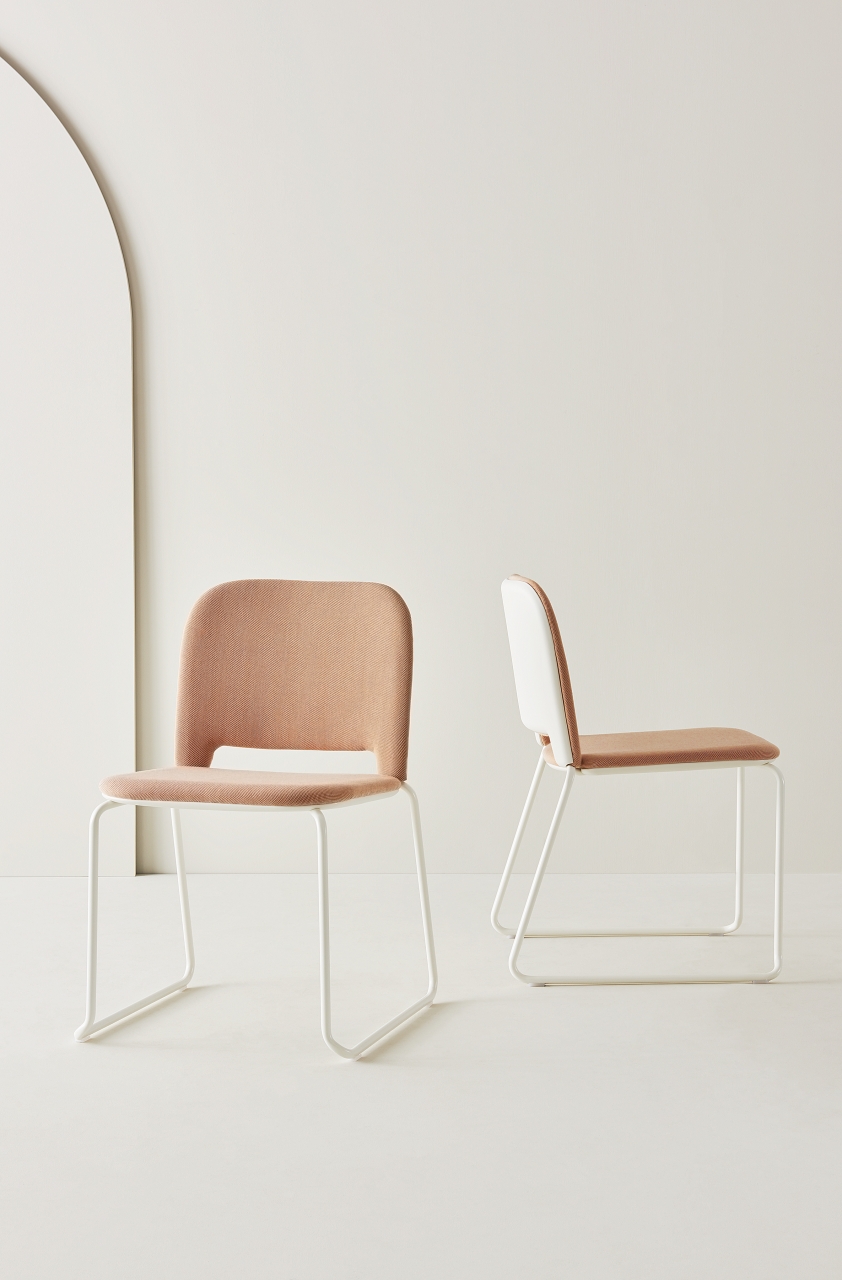 The frame with very resistant sled base, made of steel with powder coated or chromed finish, the external shells in polypropylene and the seat/back in cold injected fire retardant polyurethane foam, make Lips a perfect contract product. An upholstered chair with or without armrests enriched by some accessories like ganging device or anti-panic writing tablet.