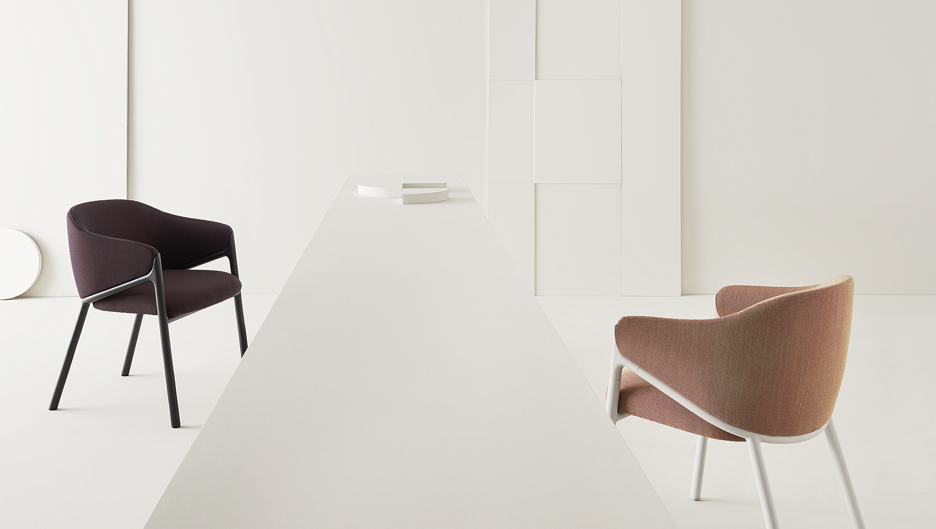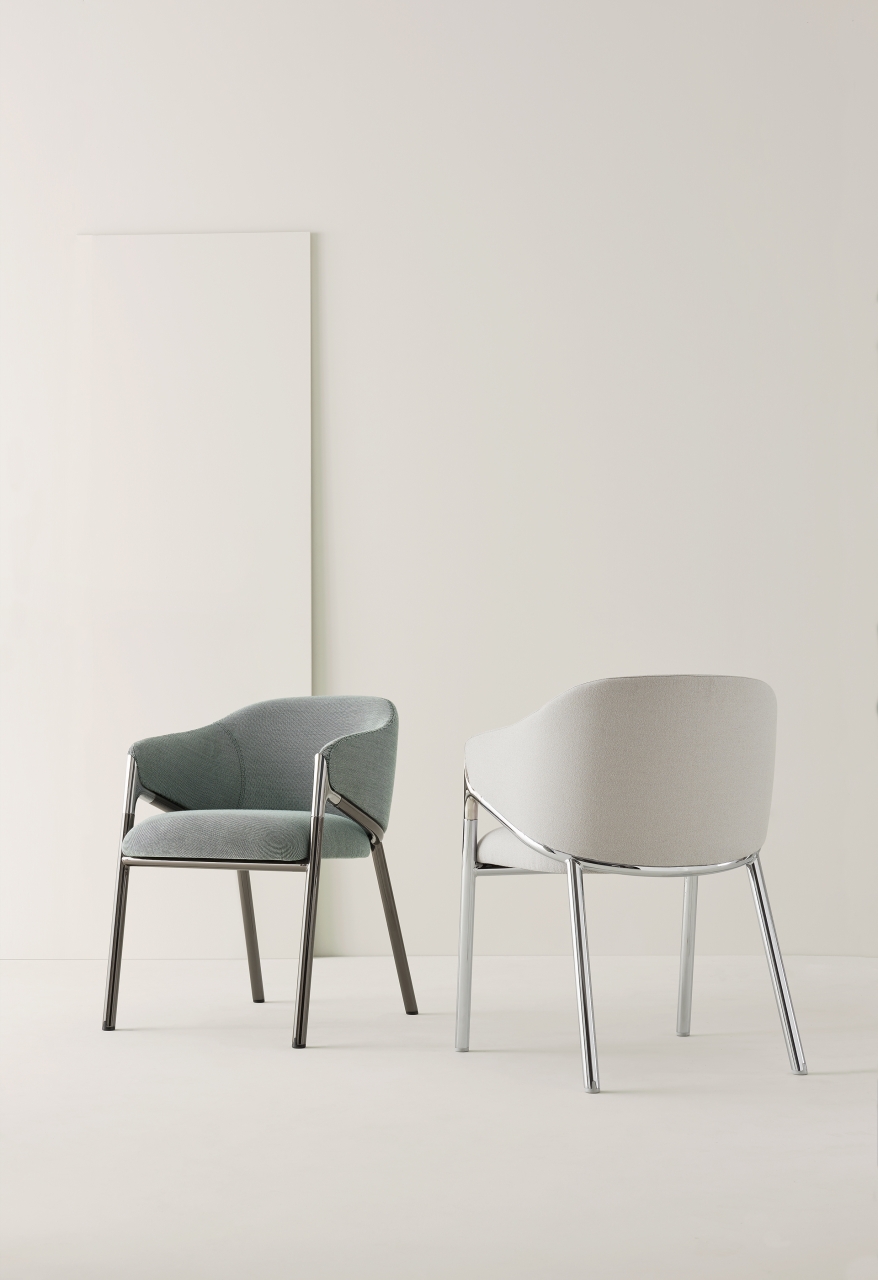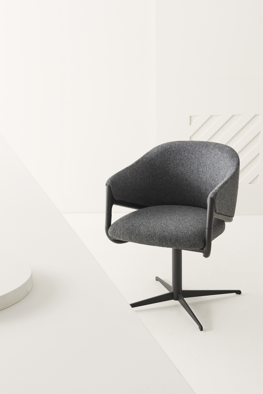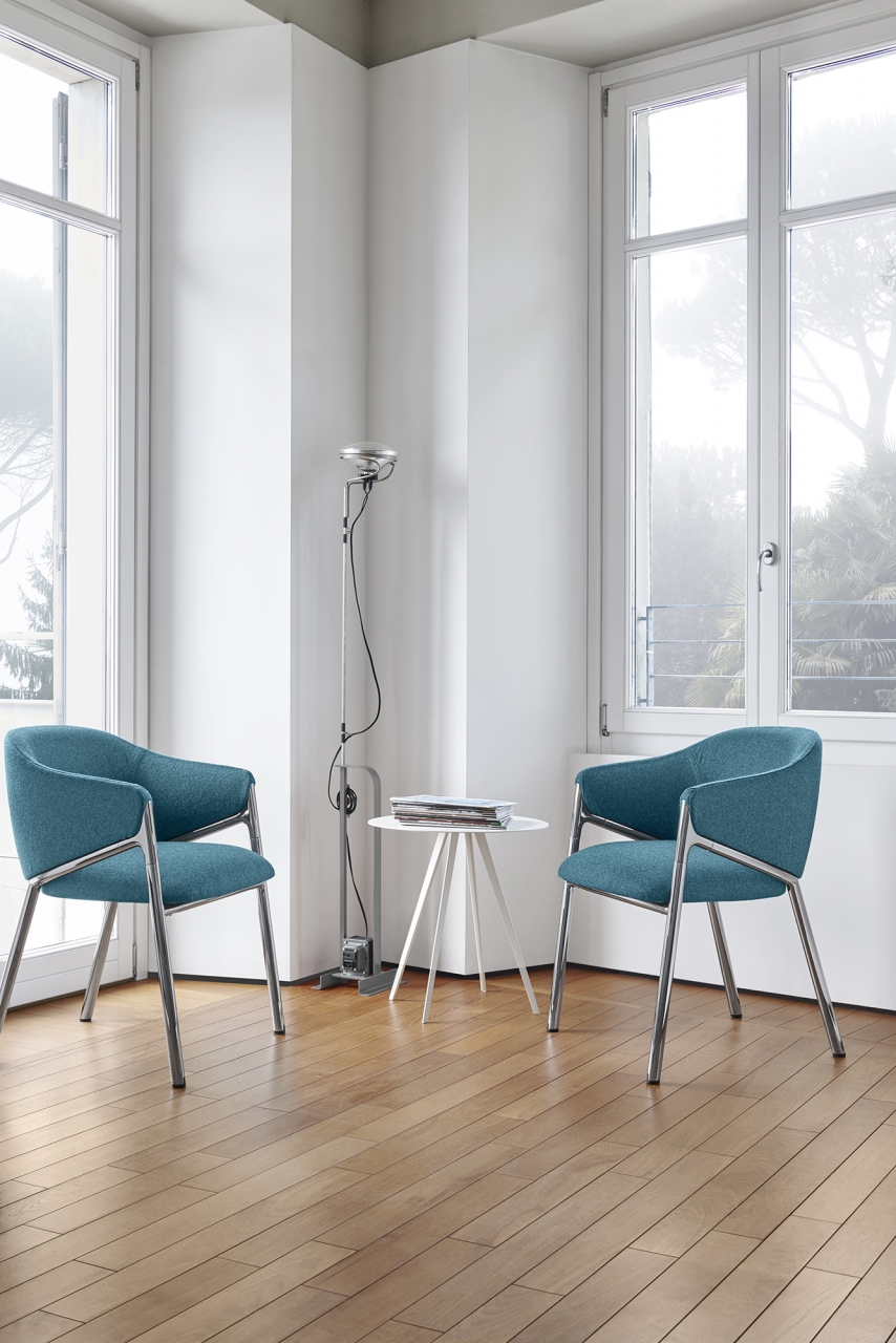 Hammer, elegant and sophisticated, is the result of the creativity of Favaretto & Partners Studio. The combination of the different elements – steel tube, die-cast aluminium element and coldinjected polyurethane foam – contribute to define a product of great value. Covered in fabric, leather of faux-leather, it is also available in a swivel version. Hammer stands out in every contract environment: lobbies, meeting rooms, hotels, and collaborative areas.