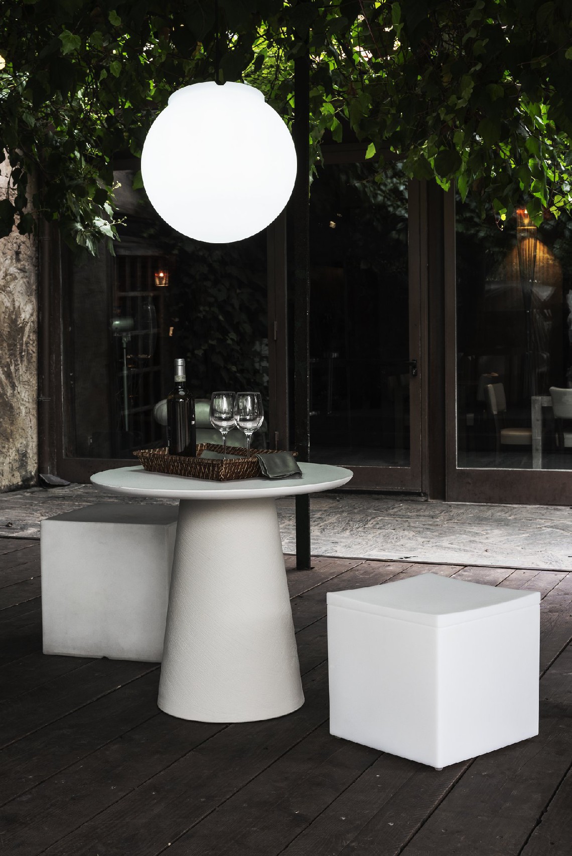 Starting with the simplest and most defined of shapes, the cube, functional garden furniture solutions have been studied, in order to transform a fixed, immovable object into a dynamic, functional product. The cube was designed explicitly as a seat, ideal for satisfying the need for extremely practical patio furniture for outdoor use. In particular, the Lounge Cube Collection, which includes cubes of two different sizes, enriches the company’s luxury furniture product line designed specifically for the garden. The seat, which is slightly curved inwards, gives softness to a rigid form. Moreover, in the illuminated version, the light coming from inside gives the cube a certain lightness.