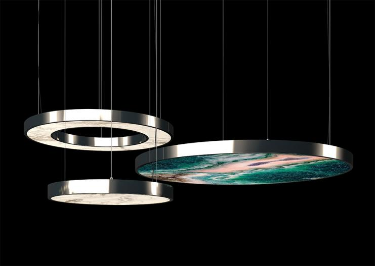 Glass spheres of various colours, finely worked, shape the light through transparency.