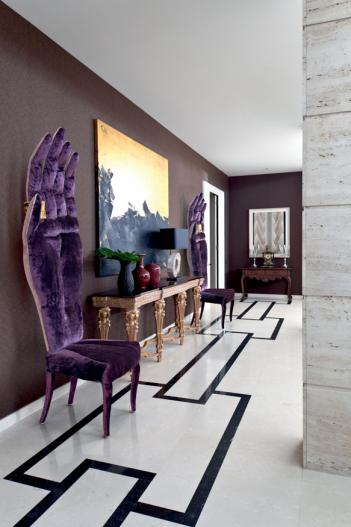 The human mind is a gift that we must learn to know; it must be trained to deal with the soul as a growing force, a flow of energy. This represents the Kundalini chair, of a precious velvet and with refined details in minute mosaic.