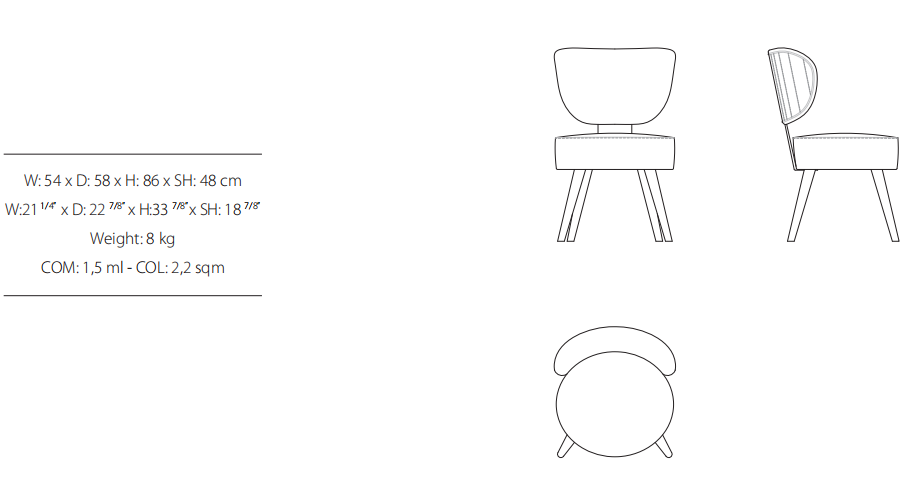 Chair in plywood and solid timber frame. Polyurethane foam padded seat and back. Steel bracket between seat and back, distressed finish. Lacquered legs. Optional: Quilting on back