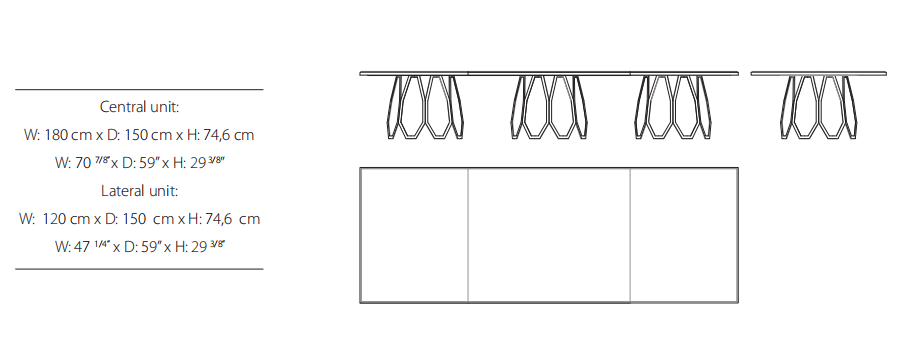 Base and top frame in: polished stainless steel, antique bronze finish, antique silver finish. Top available in mirror, marble and decorative liquid metal finish. Optional: mosaic inserts on basement.