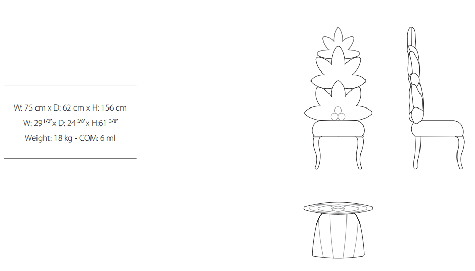 Chair with solid timber and plywood frame. Polyurethane foam padded seat and back. Decorative mosaic inserts. Fabric upholstered legs. Available in silk velvet from SICIS collection only.