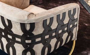 Ecco il ritorno al cuoio intrecciato a mano, tipico della proposta Smania e disponibile in 2 colori (testa di moro e sabbia). Armoniosa combinazione di differenti materiali: acciaio, cuoio, tessuto, pelle.