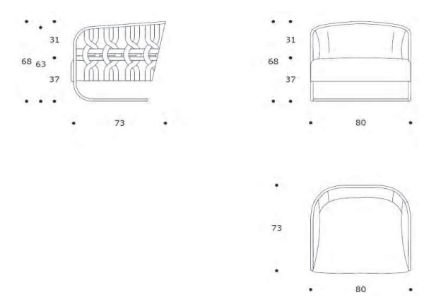 Dimensioni: larghezza 80 cm, altezza 68 cm, profondità 73 cm
