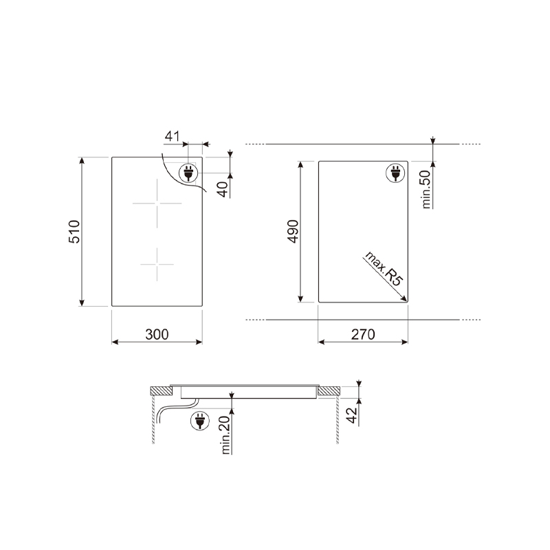 30cm 寬電陶爐,雙烹飪區(qū),觸摸控制,黑色微晶玻璃