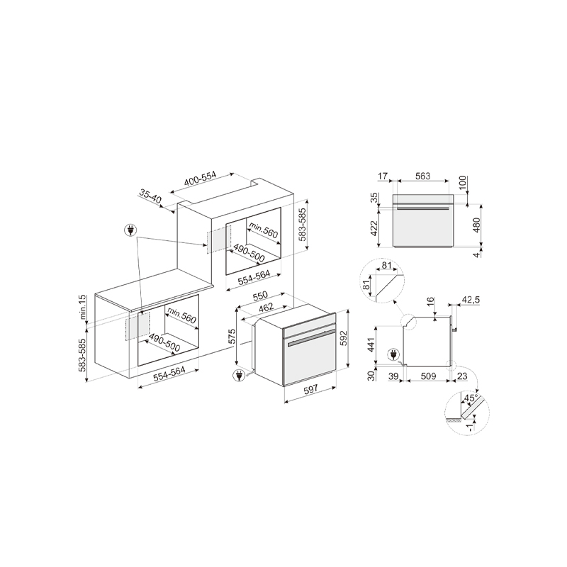 Dolce Stil Novo 系列,60cm,A+ 級(jí)能效,79L,黑色玻璃,熱解清潔,TFT 觸控導(dǎo)航顯示器,4 層玻璃門