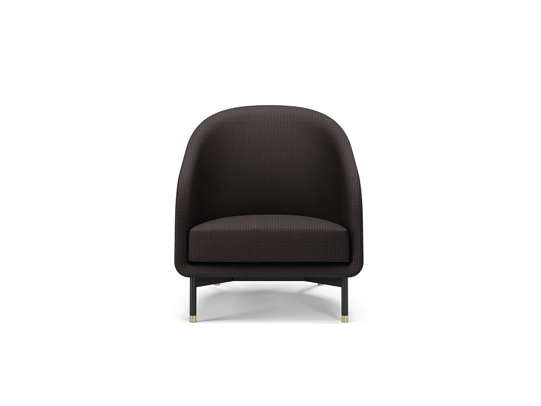 POLTRONA IN PELLE CON INTERNO IN TESSUTO, SUPPORTO SEDUTA IN METALLO, PIEDINI FINITURA ORO
