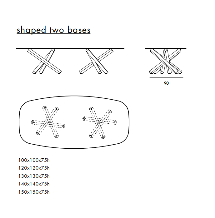 Tavolo con basi in cristalplant bianco opaco, nero o in legno di frassino con fi nitura tinto rovere o wengé o in legno massello noce canaletto. Top in vetro temperato trasparente extrachiaro o in vetro stratifi cato 8+8 mm fumé.