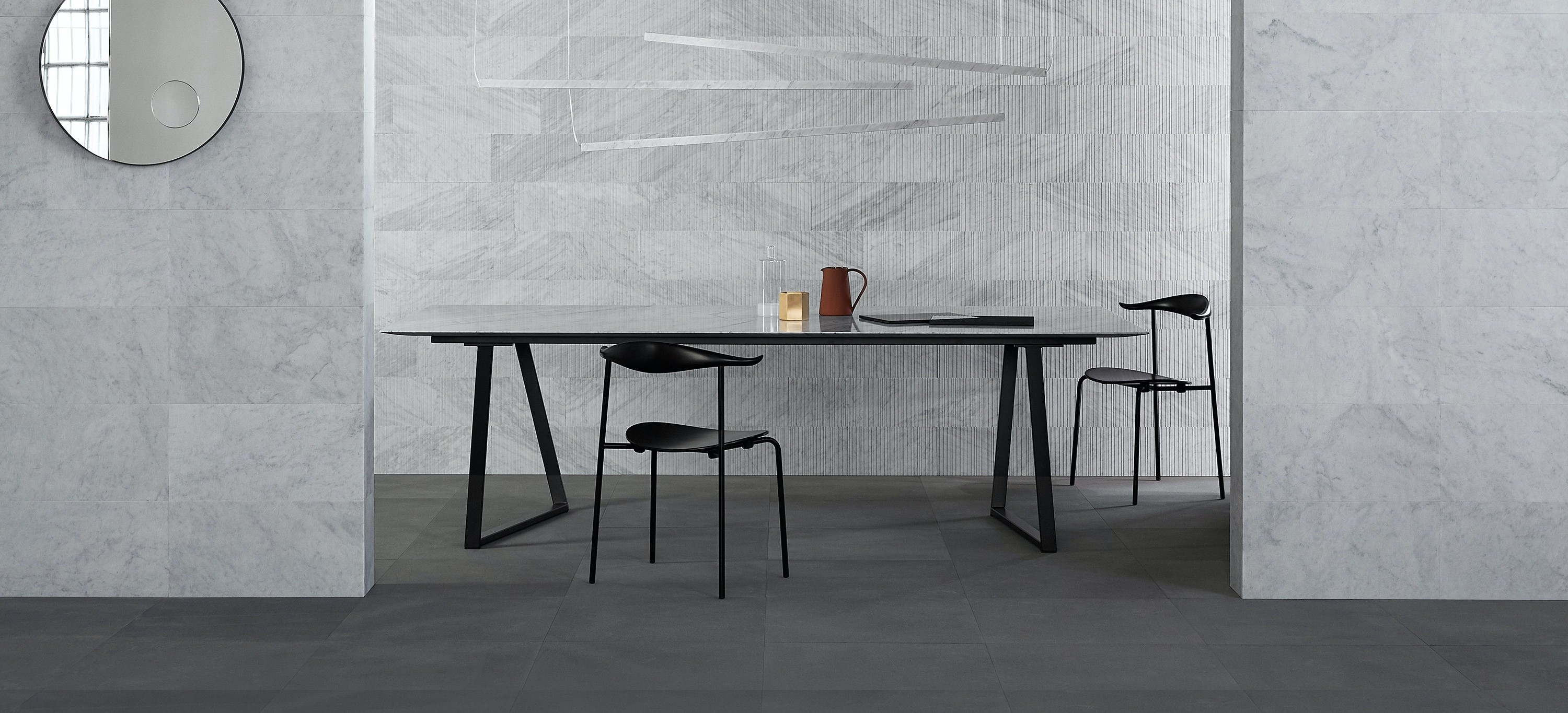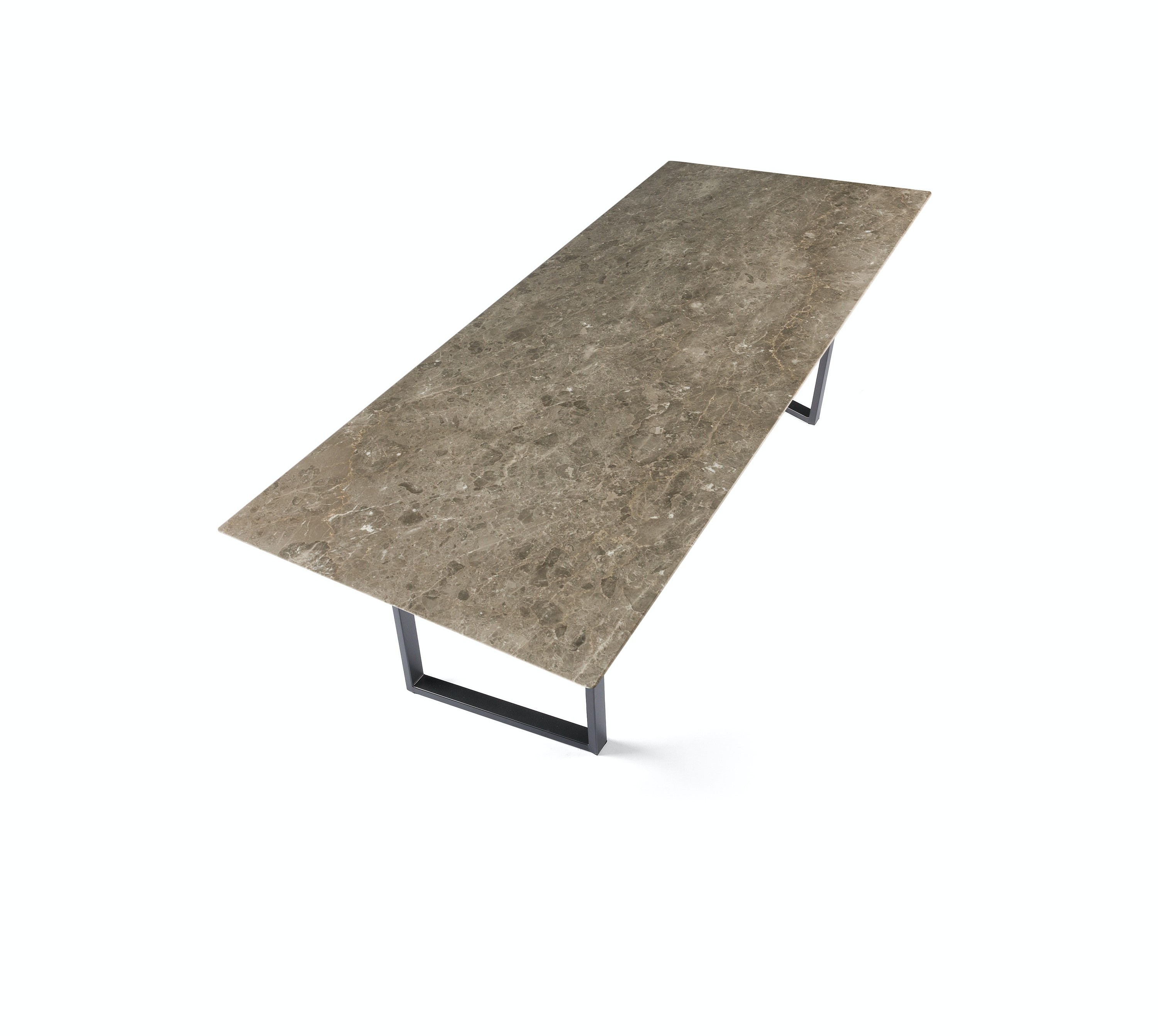 Designed by Piero Lissoni exclusively for Salvatori, Dritto combines elegant lines of classic natural stone with a bold geometric frame crafted from iron.