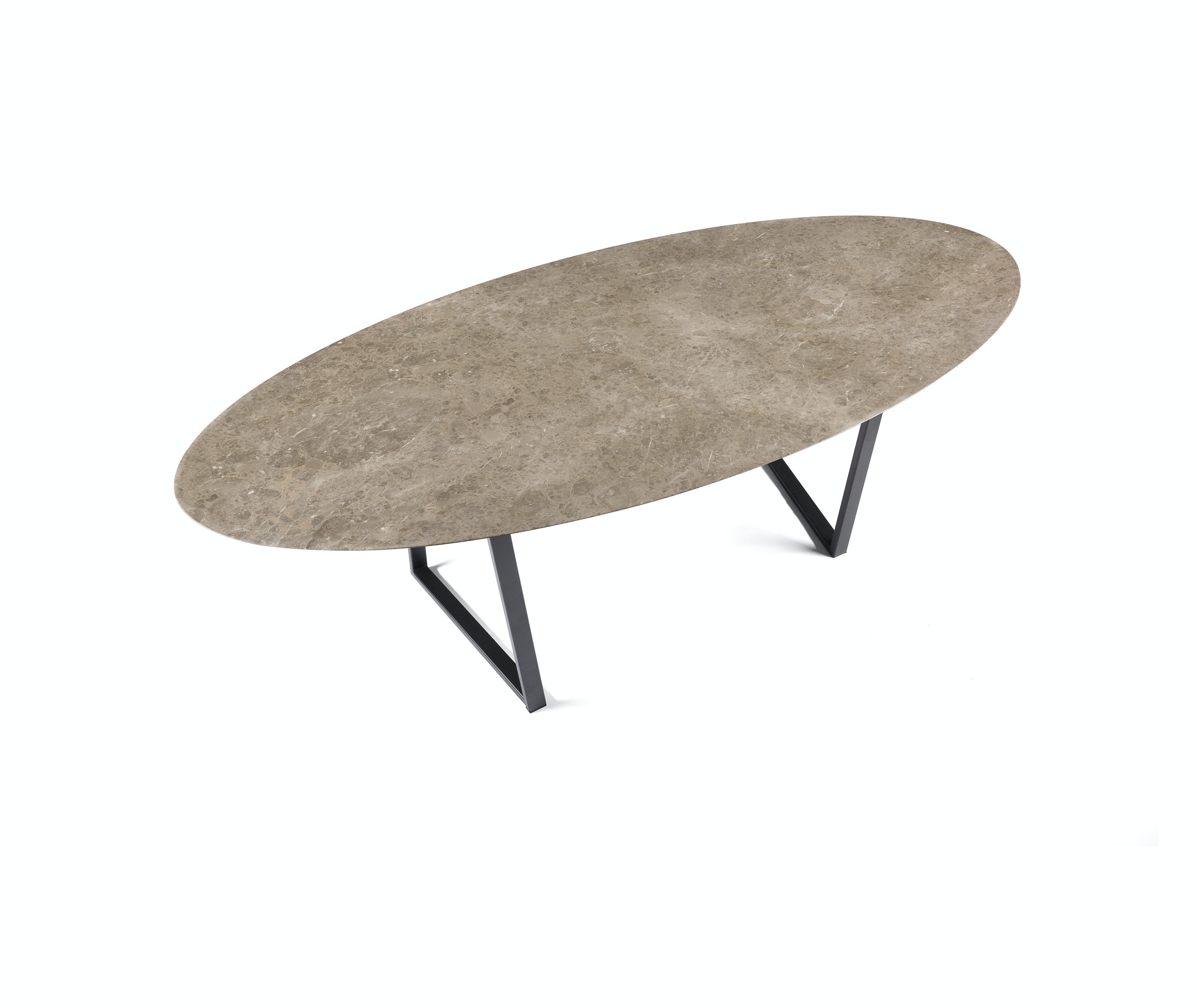 Its defining characteristic is the curved underside of the top, and its uber-fine edges of a mere 5 mm that give the impression of a lightness and delicacy rarely associated with stone.