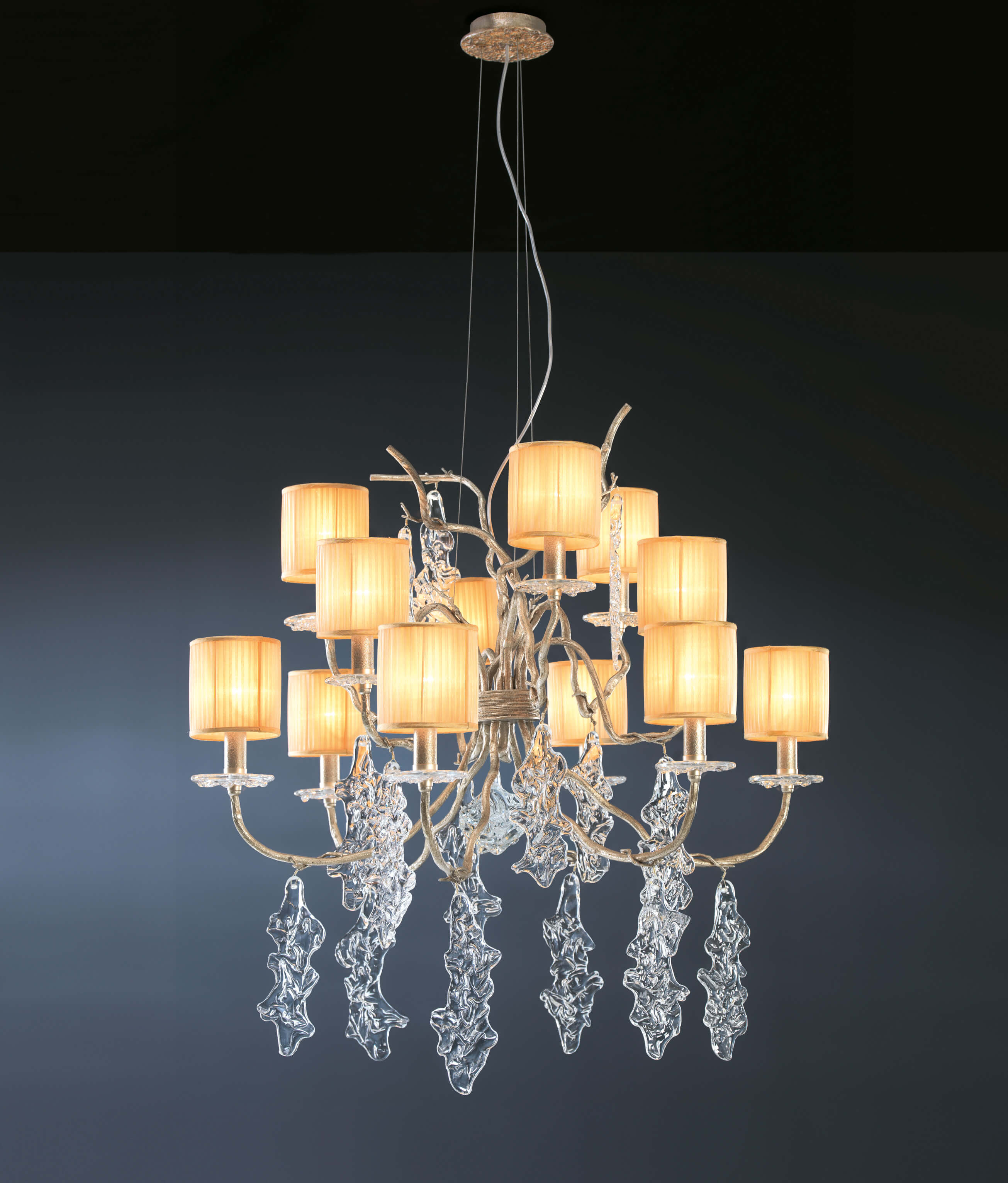 Materials: Bronze, Glass and Organza Lampshades